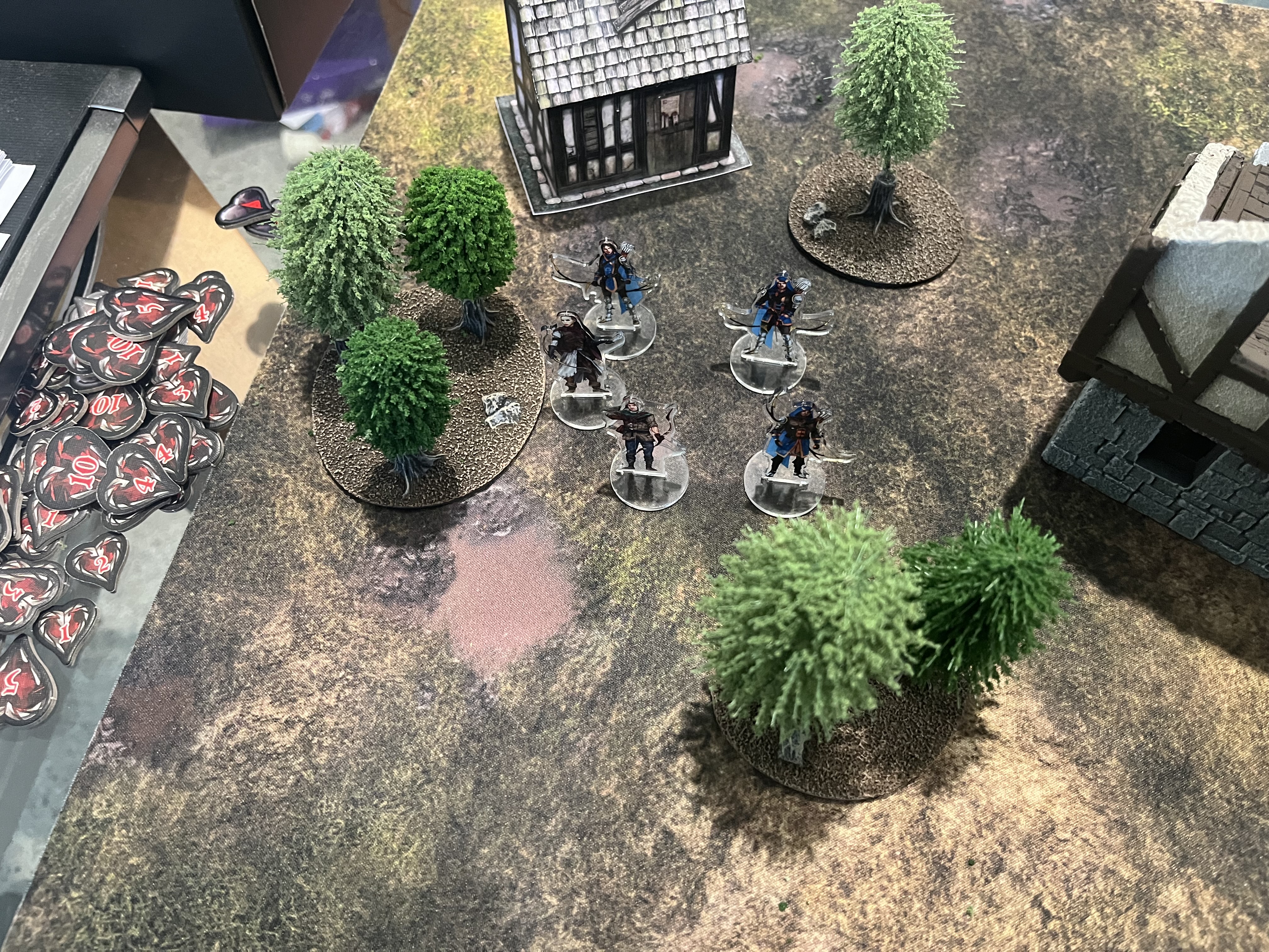 >>97305671I make paper terrain. Fat dragon make good ones for D&D. Then I use standees. Here is an example from a wargame but could work just as well for D&D. The house is paper the rest are battlefield in a box. If I’m using a physical board I’d prefer measuring distances instead of using a grid anyways. Grids have issues with distances.