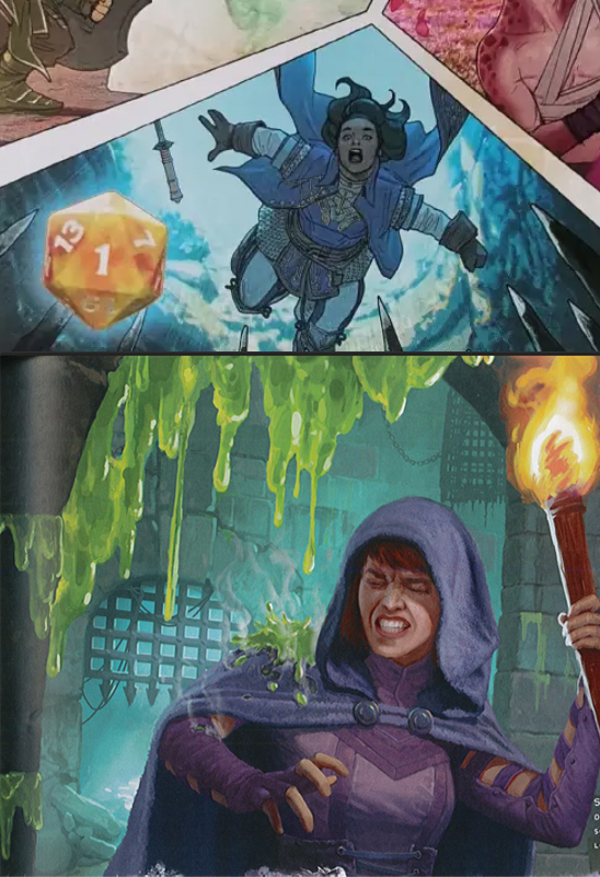 It is probably not too controversial to say that the art of modern rulebooks is made with female representation in mind.These women are predominantly filling important roles, such as archmages, military officers, or nobles.But how come there is barely any art that shows them in peril, or at a clear disadvantage? Regardless of their status.There is no shortage of men in peril.Neither in classic nor in modern art.