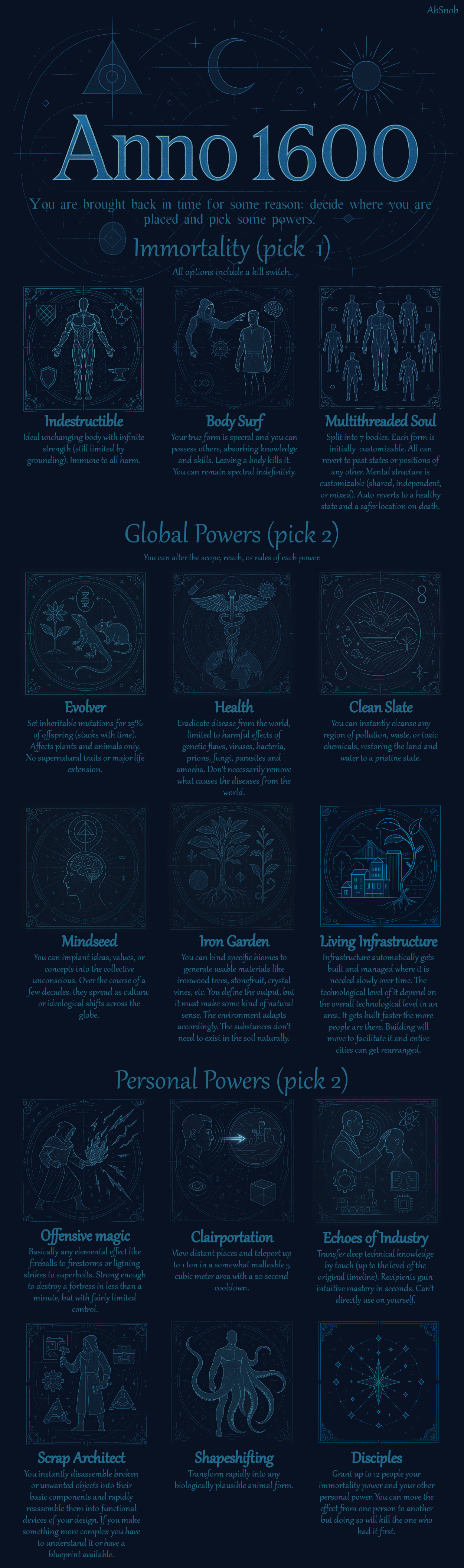 >>97311034Same reason why not every CYOA should have TroyX-tier omni-hyper-ultimate godhood ascension(tm).