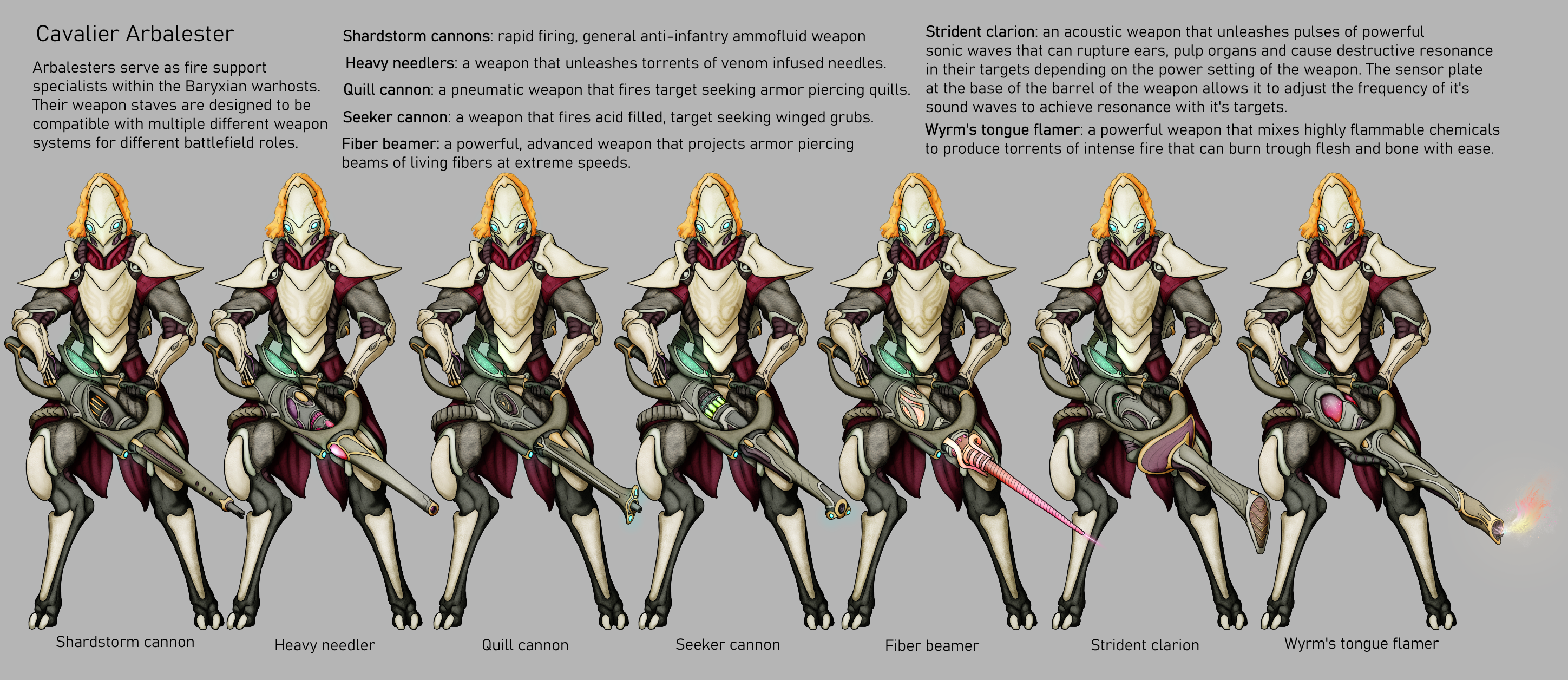 >>97341958Neat. The race for which these weapons are for are some sort of insectoids?