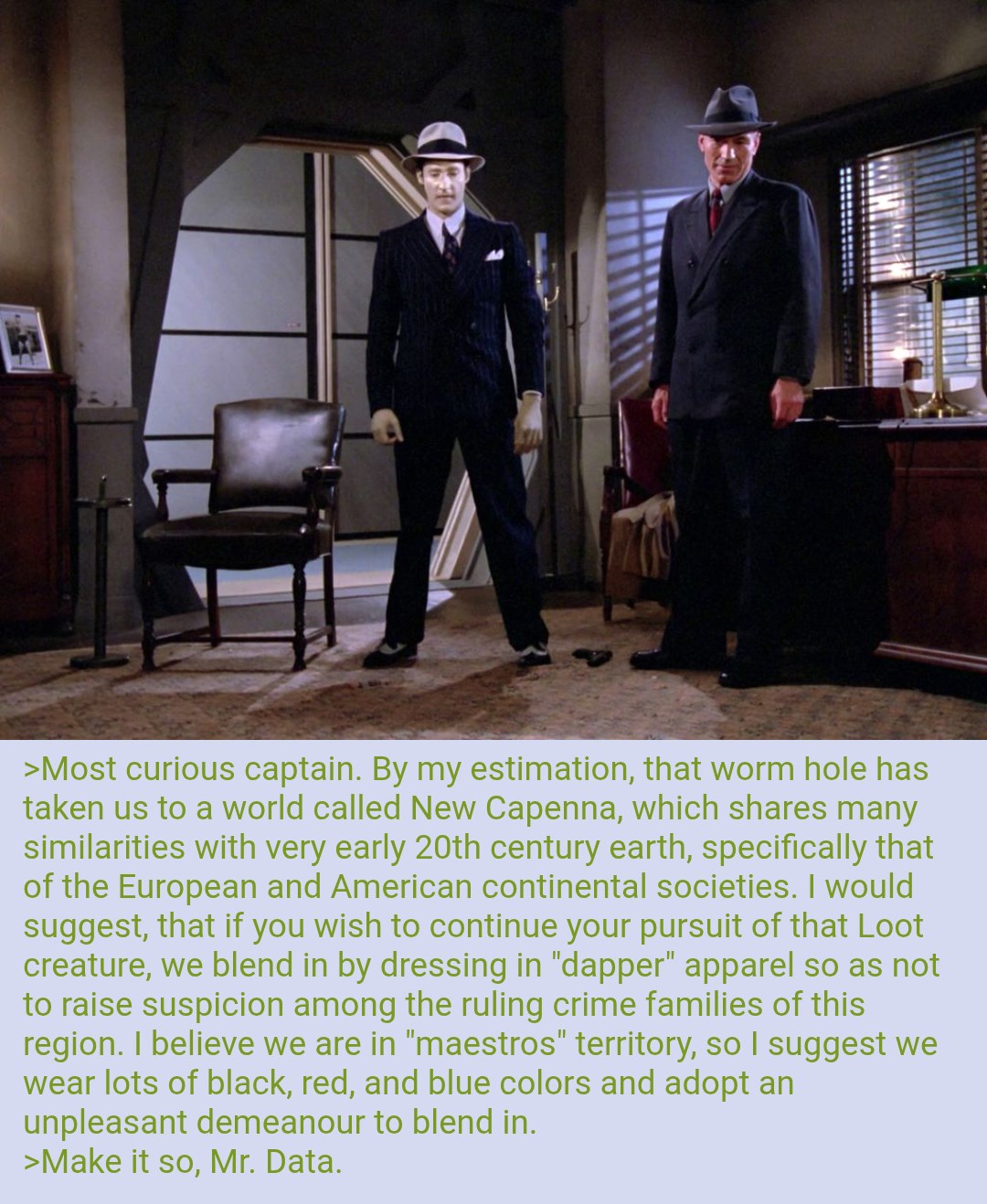 >>97320130this is why star trek will be the only good set this year and only if whoever is in charge of design rightfully trashes the kurtzman legacy at every opportunity>>97320147not possible, these characters were developed for television, not a novelthey'll look as true to the actors as possible so as to capitalize on CBS' dubious ownership of their likeness
