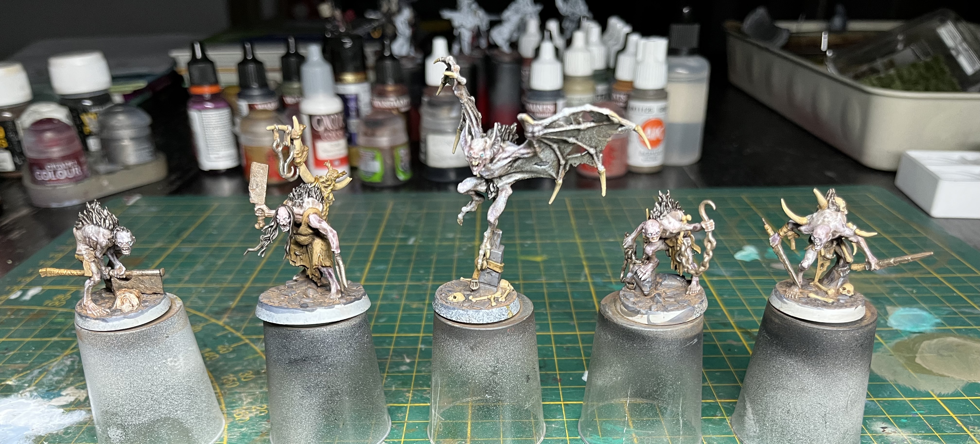 I've been trying to bit by bit work on the blight kings. Also got some dirty down moss to fiddle with. It's a neat little effect but I reckon it's gonna be a few more models before I really get it nailed. Until then just gonna keep chugging along!