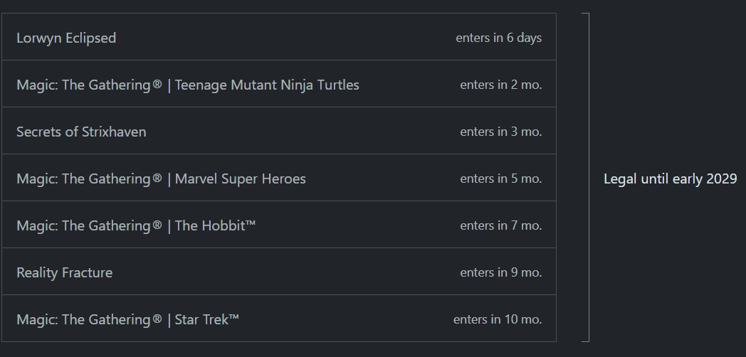 >>97331914Ain't too bad though, I feel like they had that same thought with Final Fantasy, Spiderman & Avatar selling well on IP and don't need the insane meta warp of stuff like Duskmourn or Bloomburrow which build Tier 1 Pioneer decks as block constructed alone.Biggest problem 1 year till people will care about those cards even in standard as they are outclassed by all the 24' sets