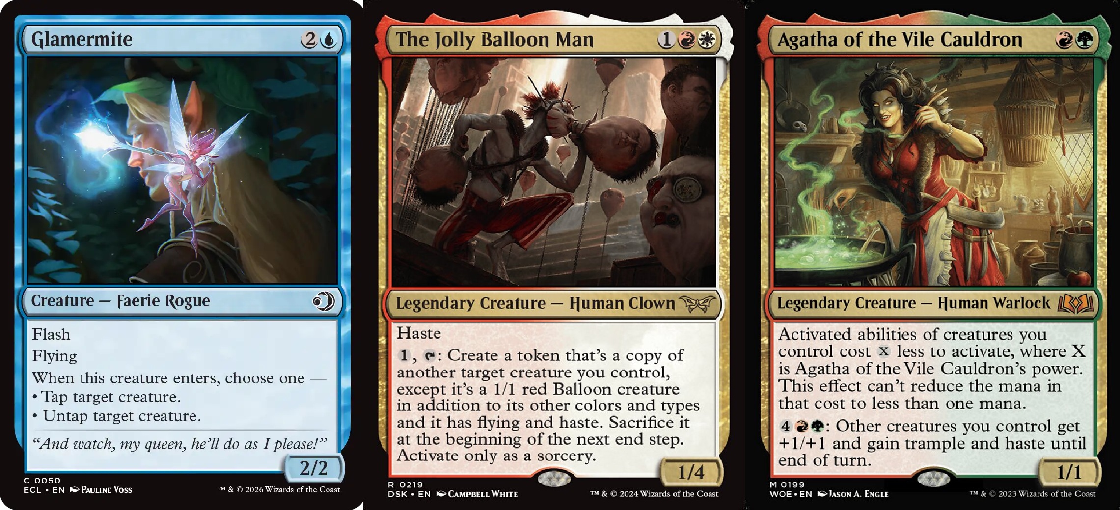 >>97330347The jolly balloon man creates a haste token of glamermite. Glamermite untaps the ballon man who taps again for another glamermite token who untaps the balloon man. Then attack with any number of faeries. Agatha is to reduce the activated ability cost