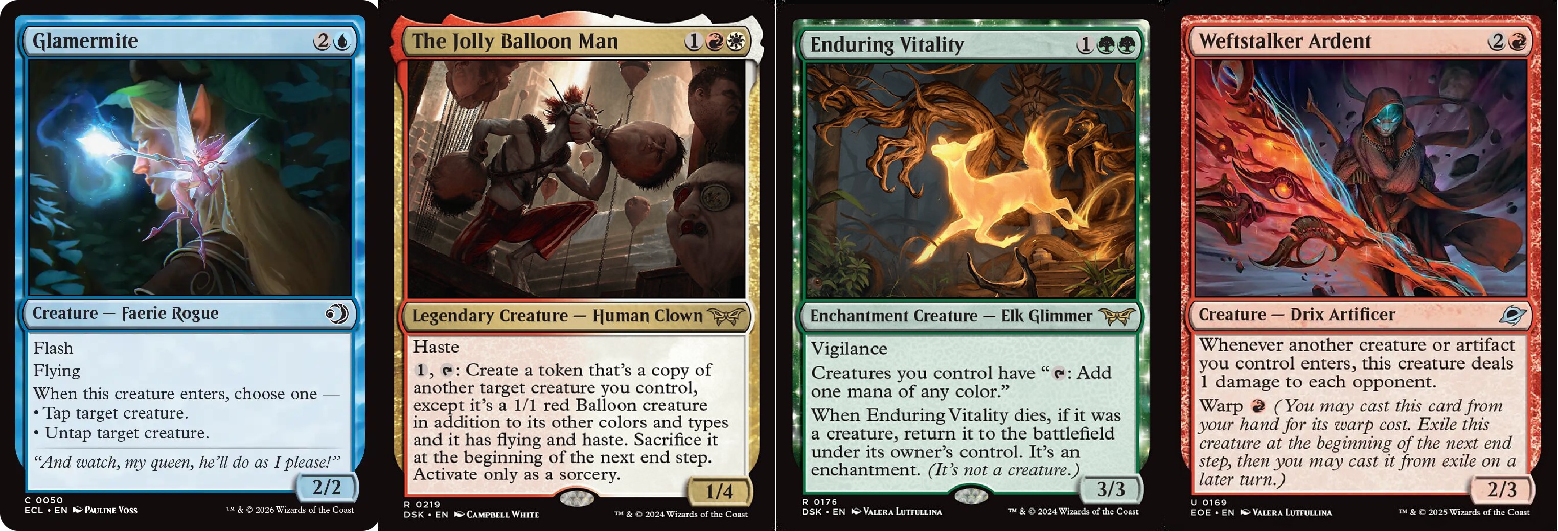 >>97325967I remember the UR one being used for all kinds of treasure + looting fuckery ie creativity decks and the BG one being a decent self mill card. I have no idea what the other 3 even do without looking them up.