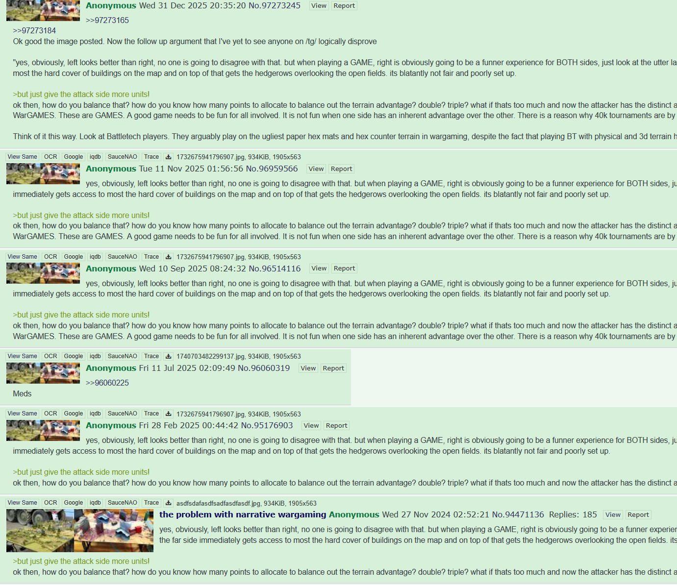 >>97330546 There's a weird 40k terrain schizo that has been fucking up the board for a few years now. It's pitiful to see.