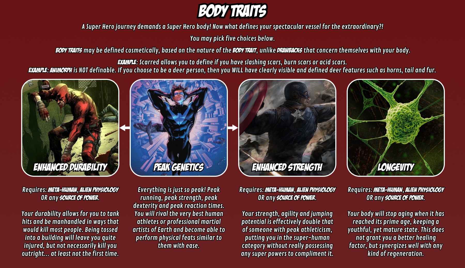 >>97334481This is correct understanding of the scaling.>>97334413I dont like drawbacks, that arent drawbacks.>>97334166>>97334187Intended. 50k super powered beings in a Bleak setting is asking for a lot of trouble. Which is fun!>>97333817Somewhat, yes. But not entirely.>>97333419Toggleable. As >>97333439 has correctly deduced. No powers available to you on the Super Powers page are by default a detriment to you.