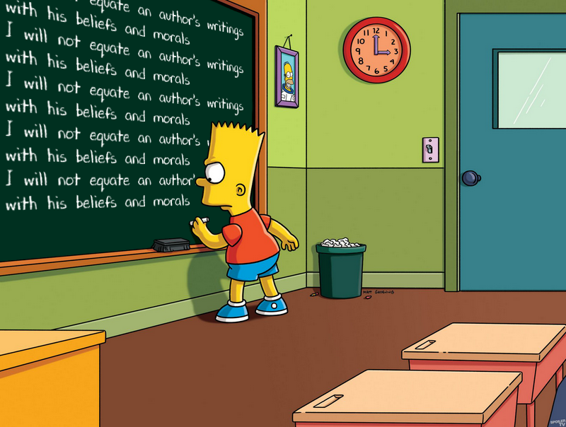 >>97340875>>97340843See >>97341100Media literacy is at an all-time low, and people cannot separate fantasy from reality, or the author from his writing, because of constant failures by the education system to teach these things.