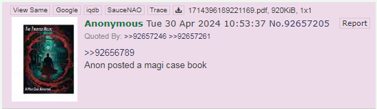 >>97343769>>97343854>146 page magi case fanficIt was real!I'm not brain damaged!This is the second time in a few days that I'm proven not brain damaged after !*!*!*!*'s mech cyoa turned out to be real. From now forward, I'll consider things I believe in to be real by default.