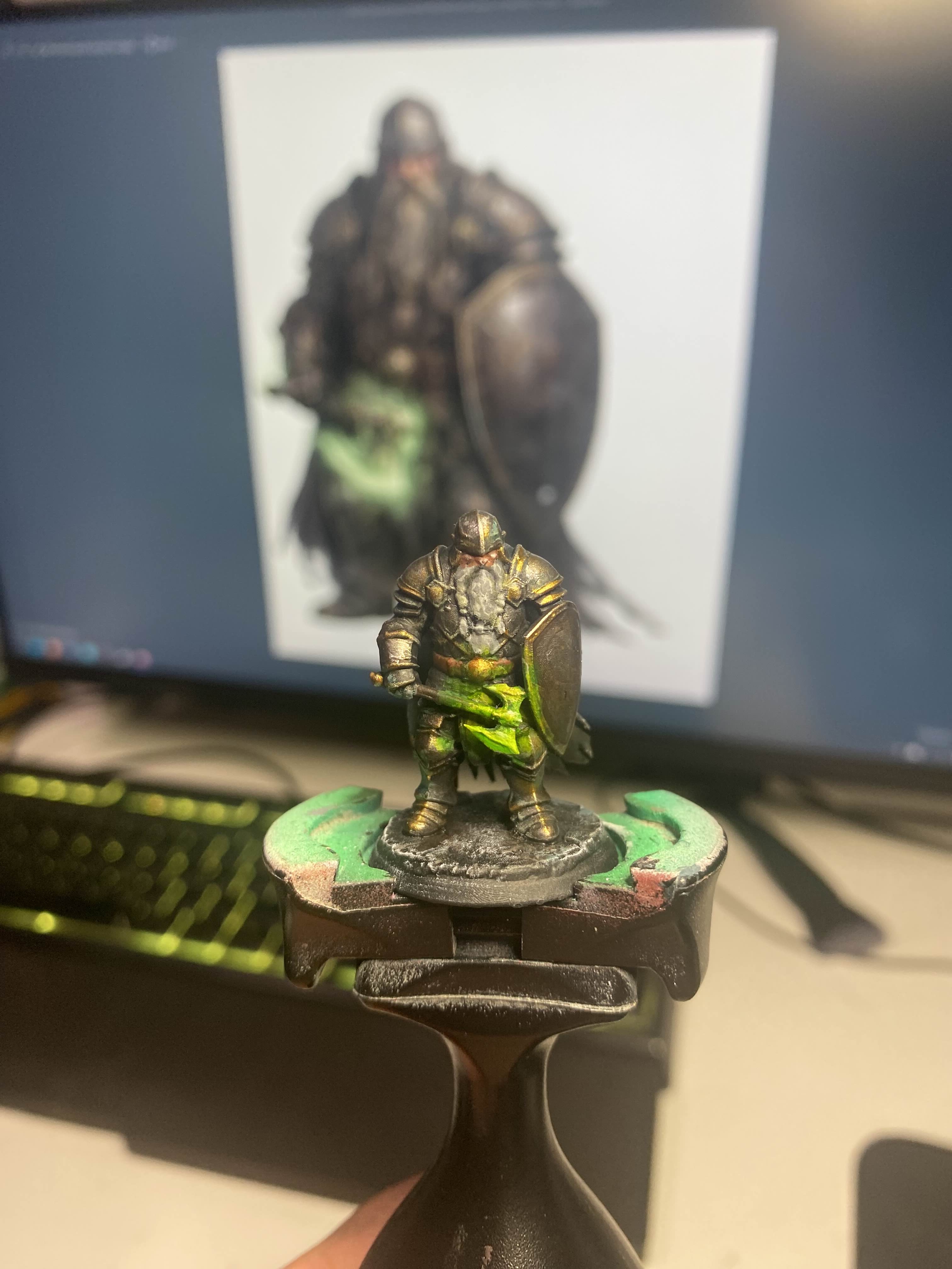 I've joined a new ttrpg group and one of the players asked me to turn his ai slop into a mini. He said he can't paint for shit so I offered to paint itit looks kinda grimey to me, bit too much or let's say undefined, but the ai slop he provided also has a grimdark aestheticopinions or rather tips on how to make it more crisp?