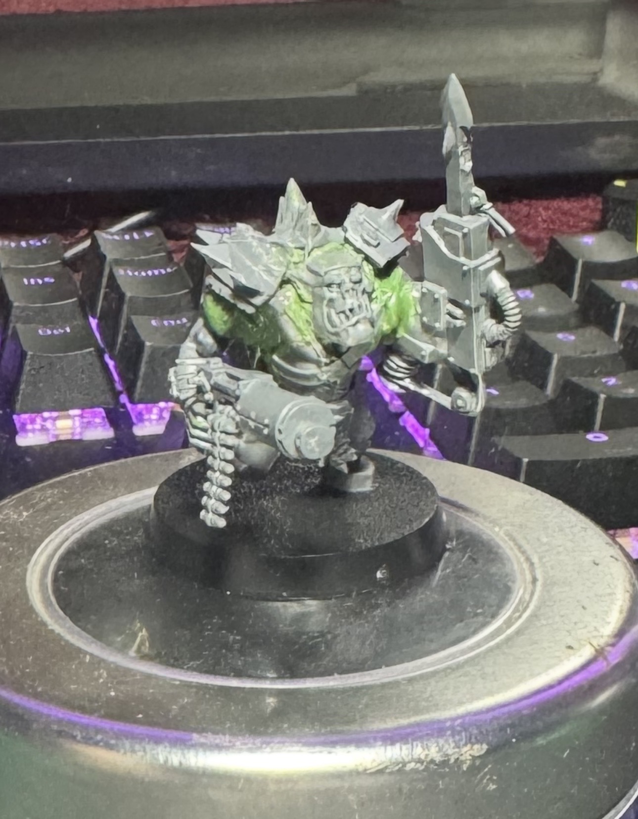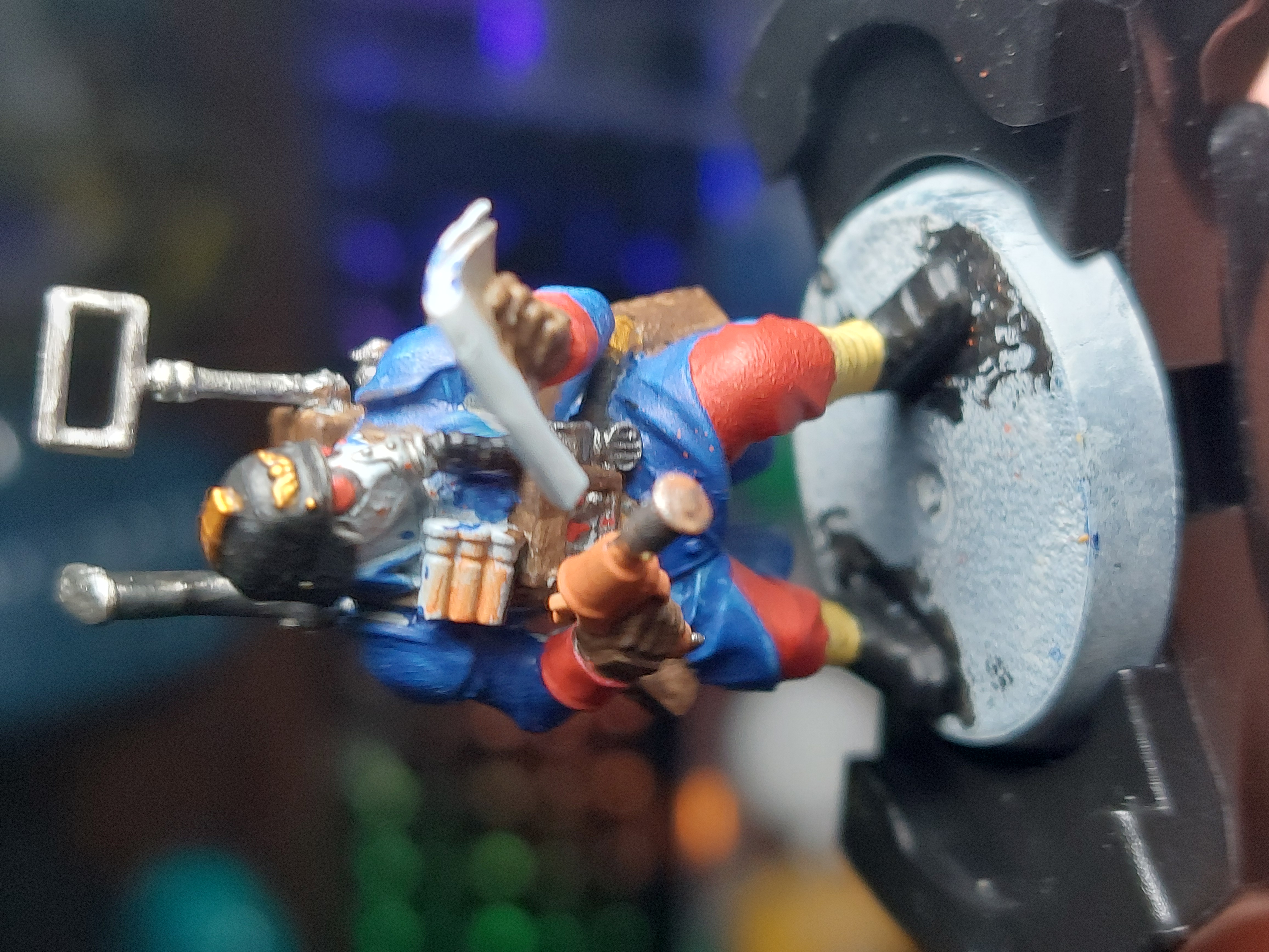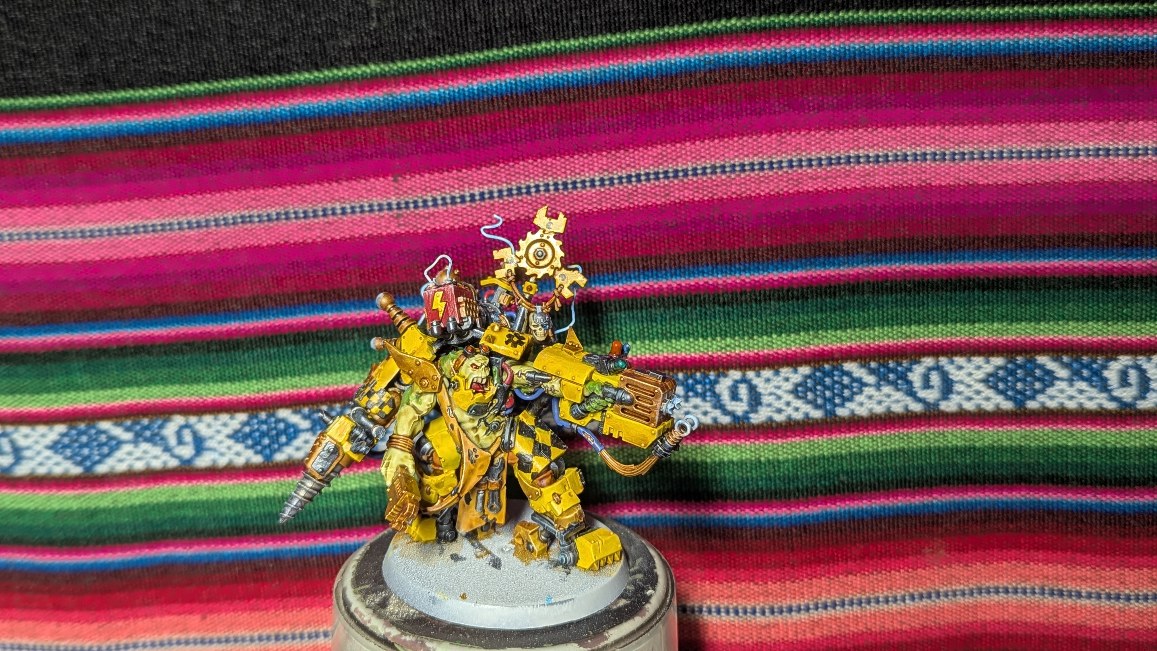 >>97350311WIP of my next krieger, the vox caster of the squadNot sure if I should go get a pot of Grey seer or use another white/gray to fix his mask because I got some red splotches on spotsGotta fix up the little mistakes as well and then do some layers and shadesAntennas fucked but I don't care anymore about it