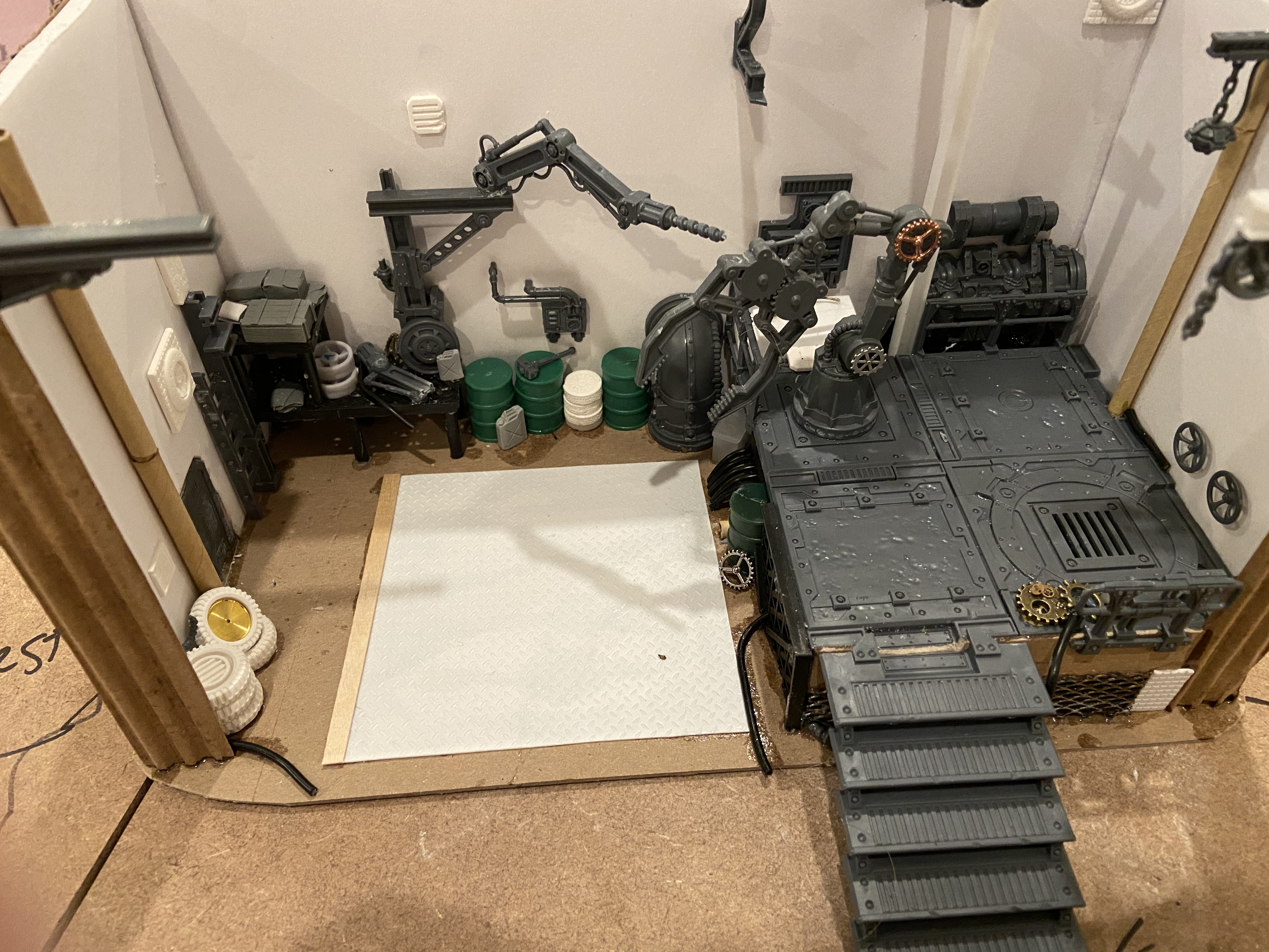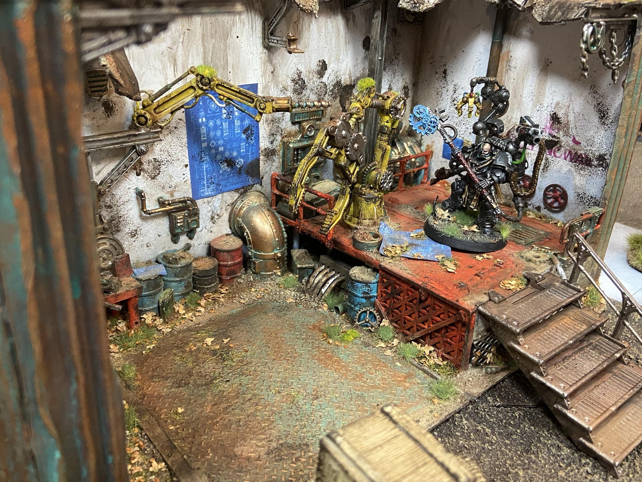 >>97353594airbrush layers are EXTREMELY thin in most cases. the ink is not only reactivating as others have said, but in general you should varnish your airbrush work before proceeding with brush/sponge etc in most cases.>>97353661NTA but the cranes are from Battlezone: Mechanicus – Galvanic Servohaulers. pipes are the normal GW pipe set by the looks of it. floor tiles seem to be part of a zone mortalis/necromunda 12" floor tile piece cut up. railing and stairs are from the necromunda walkways kit. not entirely sure where the console in the back is from.. maybe Mechasite Minoris?