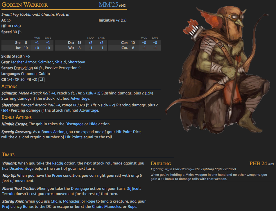 Has anyone complied a decent list of feat traits the bold text features to add to monsters to quickly customize them, sort of like how templates work in 3.5/pf1e?>take a basic goblin>give it a fighting style (not archery)>give it some utility traitsIt would be great if there was a tool that could let you just drag and drop them onto a stat block to modify them