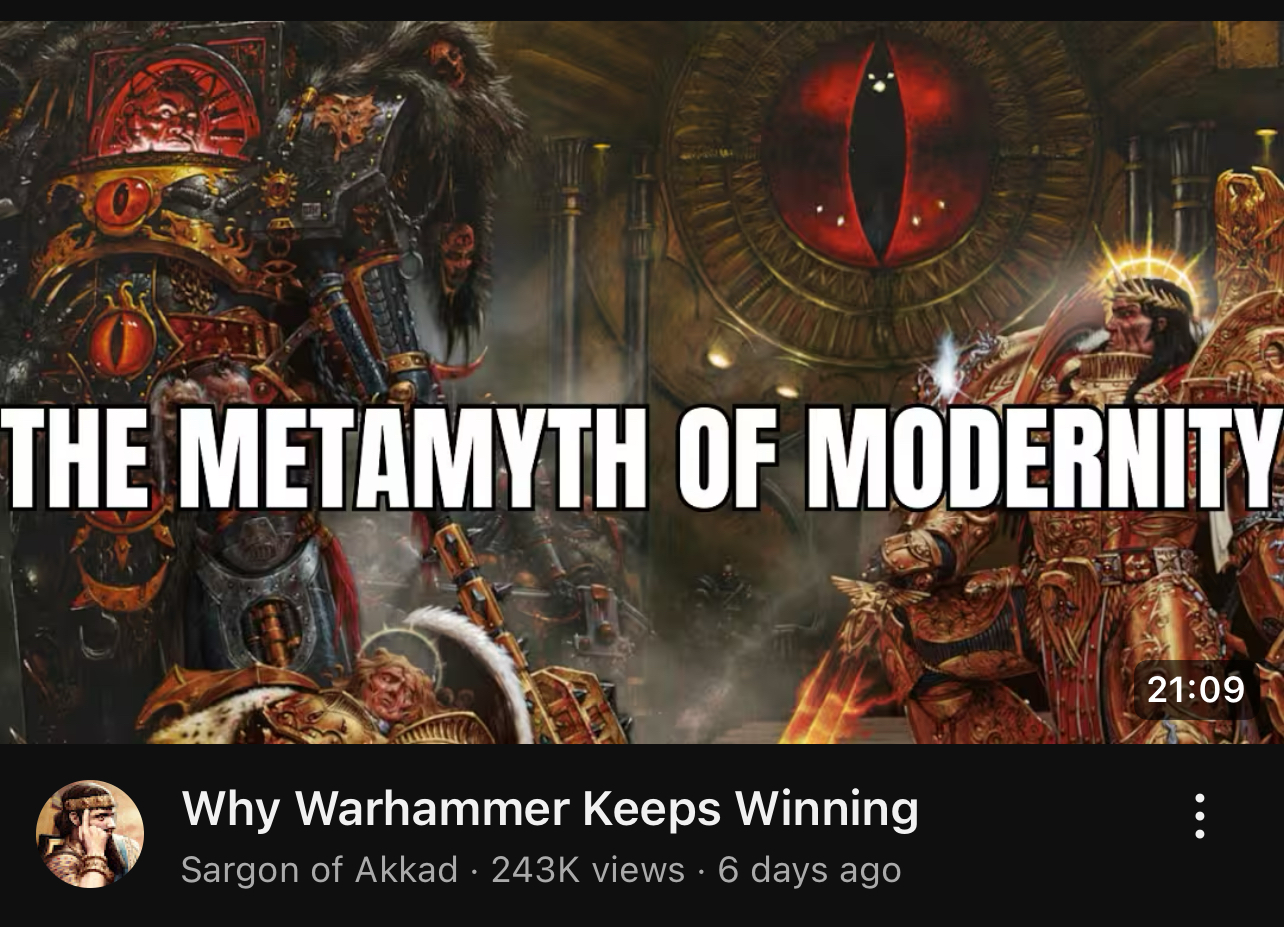 >>97380752I have never watched this video but I guarantee he's talking about the foundational aspects of 40k and not whatever shit the current employees are inserting.40k speaks to people on an emotional level because they secretly find the puritanism, moral certainty and fanaticism emotionally gratifying.