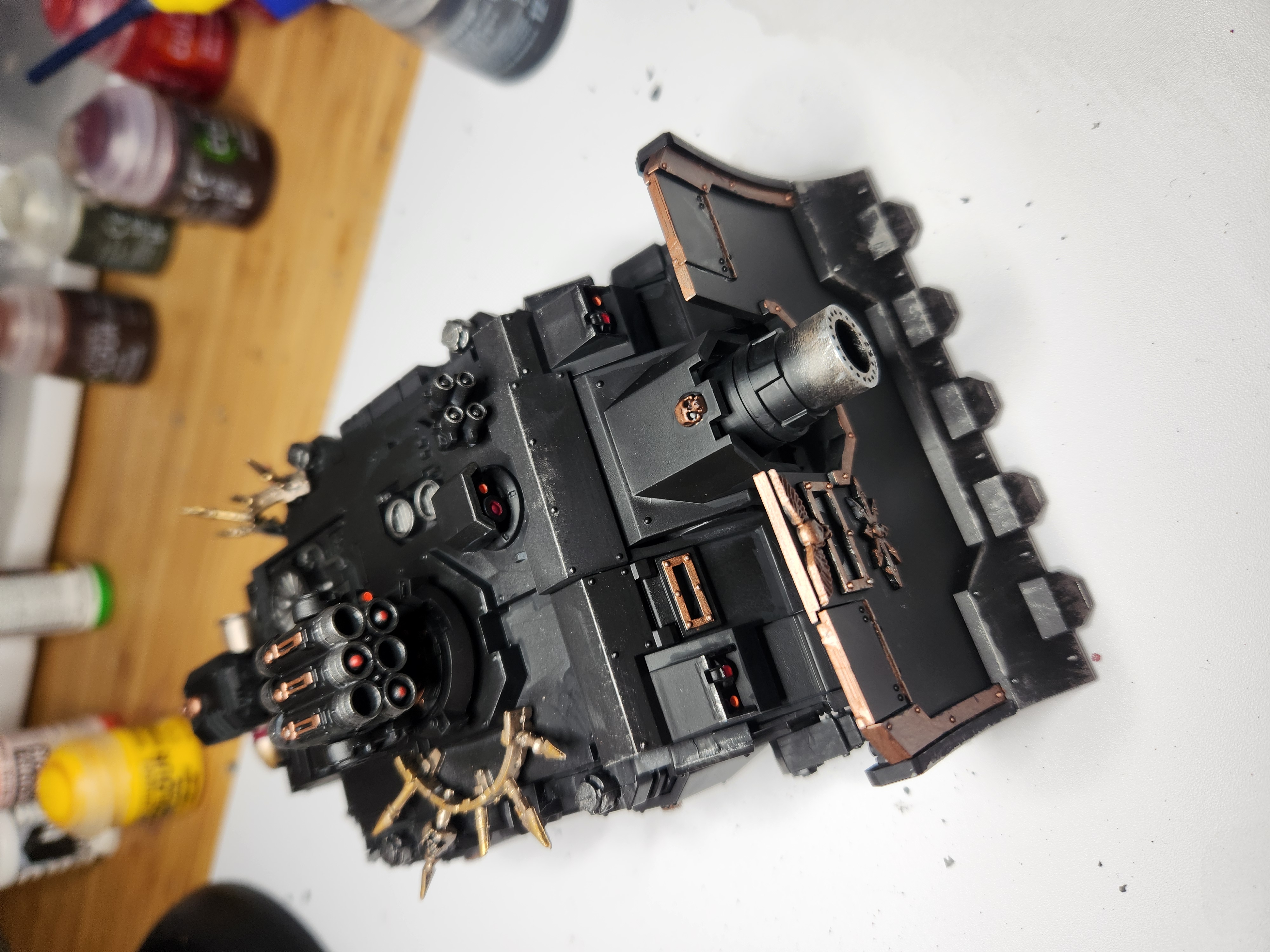 >>97388947This is the last one I finished. Posted here a few weeks back. The only paint done after assembly was the wear on the barrel of the siege cannon. Someone commented on the mold lines of the spikes. I fixed that up, but don't have new pics.