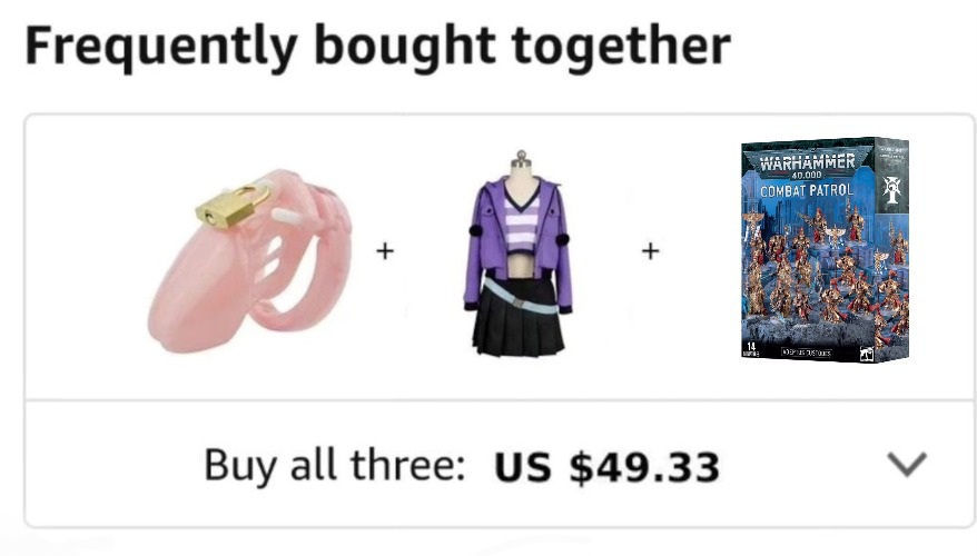 >>97395696>because I think you missed it.I didn't, I already do that, but I'm not going to pretend I want gw to release parts that I, and most other people, don't like, we want gw to release stuff we like, and to fix their mistakes instead of doubling down.good releases are met with positivity and a purchase, bad releases are met with negativity and further detachment from them, if 40k gets too bad, then it will be a definitive detachment.if you're different and want to gw to increasingly make things you don't like, then you're crazy, or arguing in bad faith.