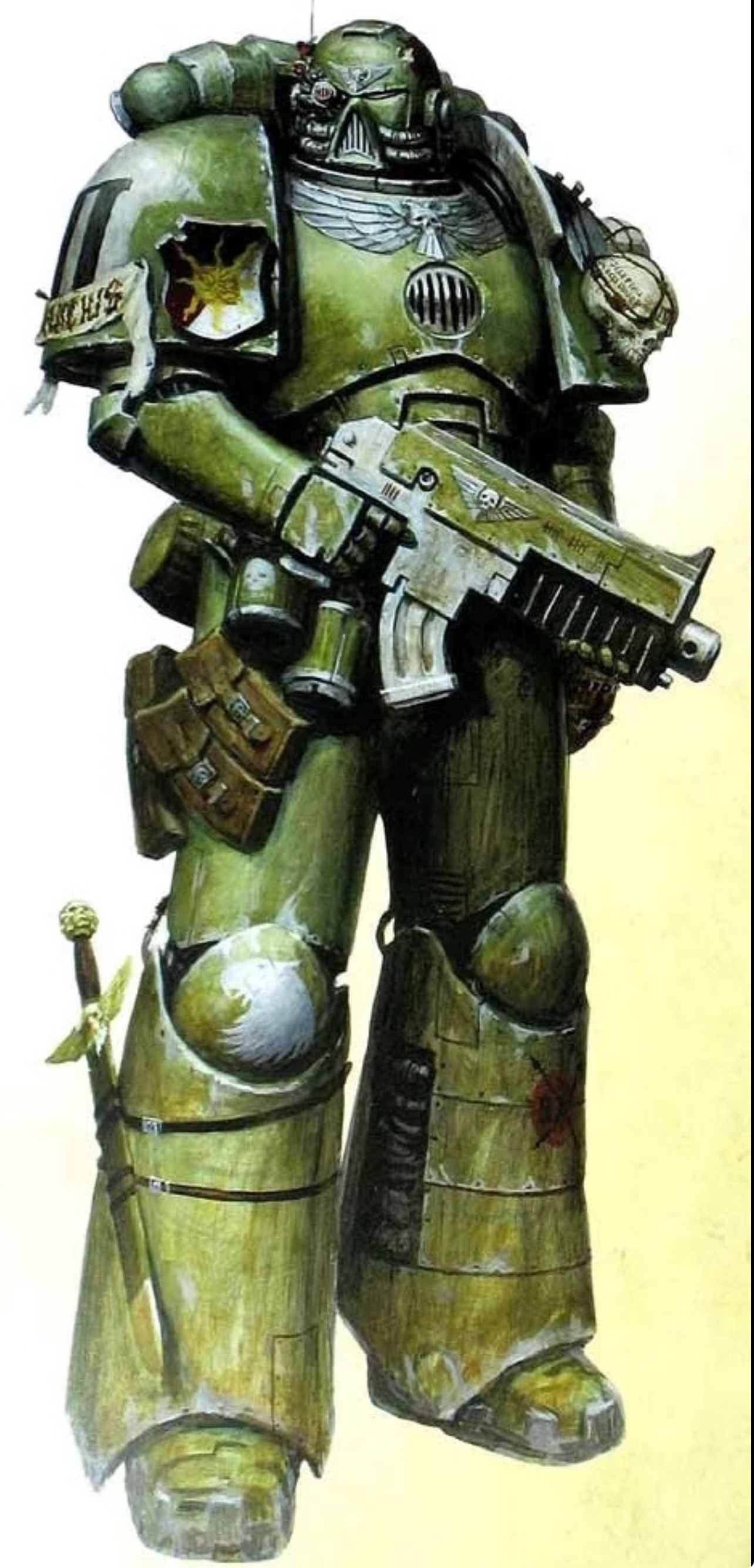 finsihed the sternguard sergeant. only just realised the musculata armour plus green makes them look like ninja turtles. haven't kitbashed a heavy bolter guy yet so who knows when I finish the unit.