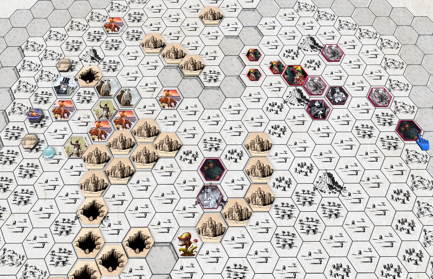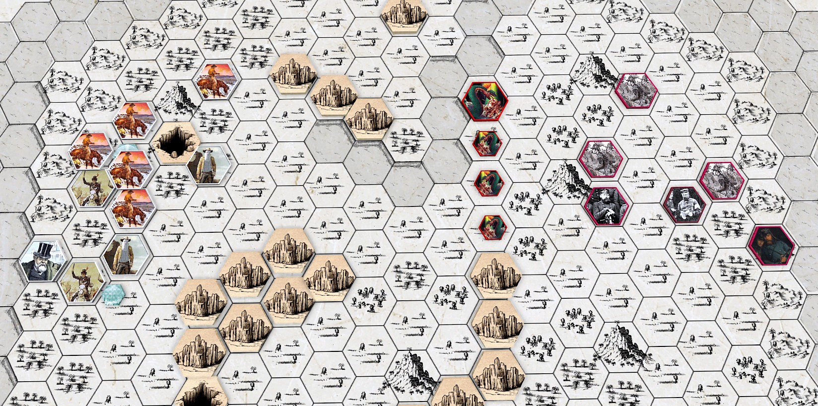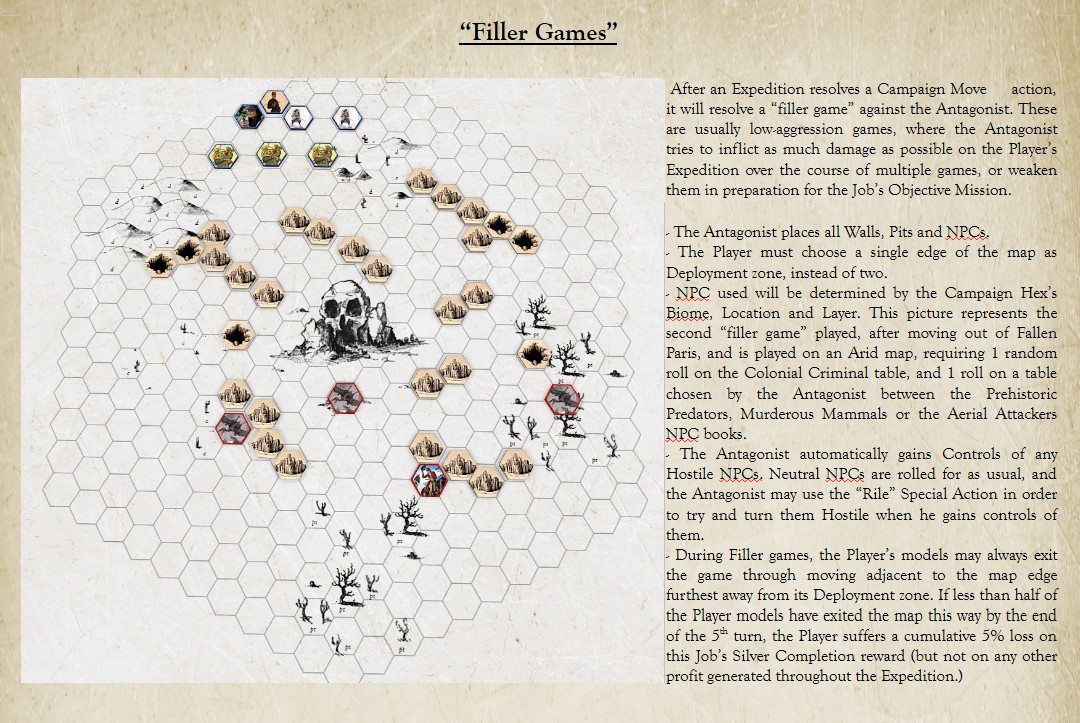 It is a Skirmish wargame. Two players with their own expeditions, on a hexgrid map, explore & fight each other for victory and profit.