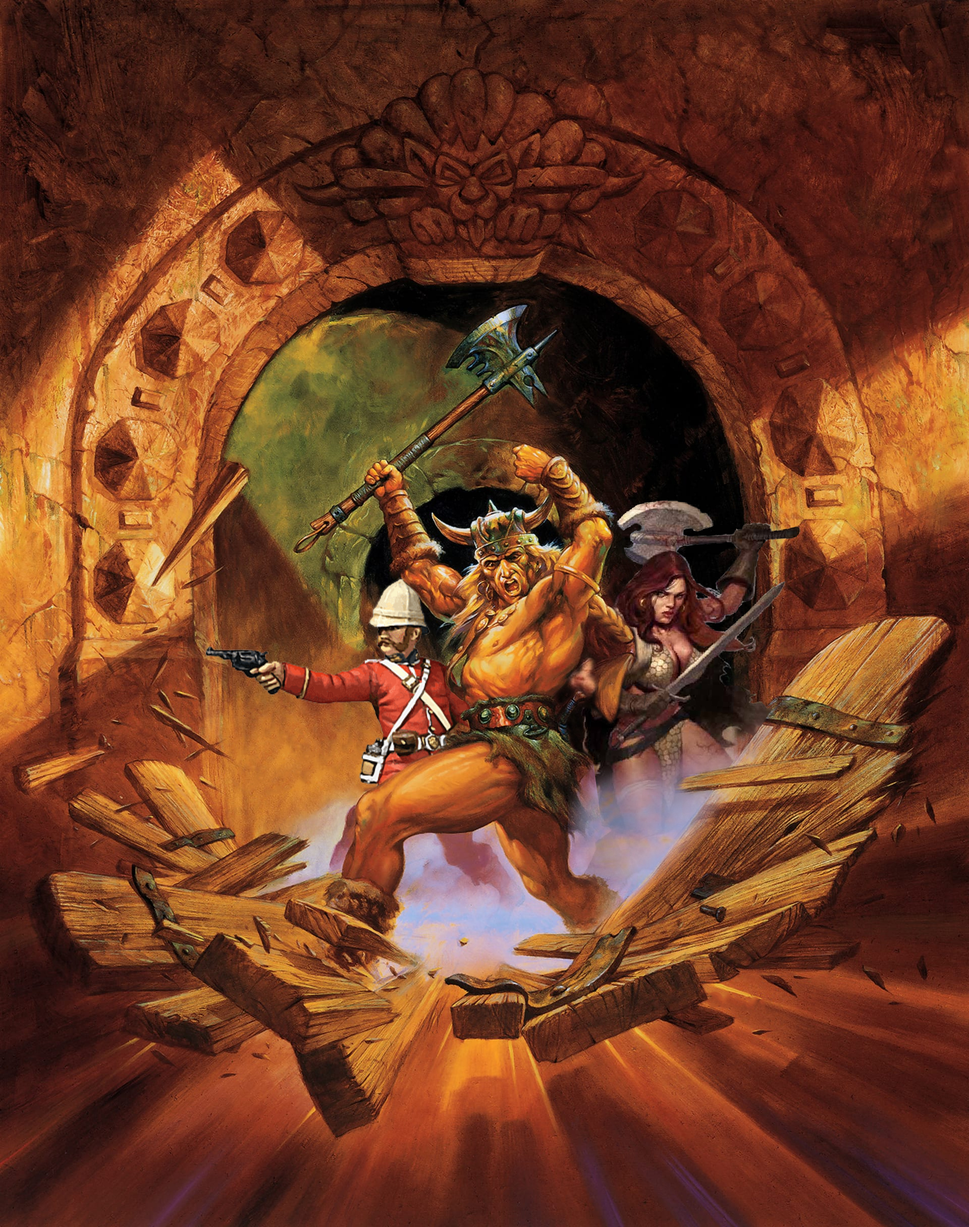 At this point Kleinschmidt is called in, and a protocol for dealing with these "long distance telegrams" established. We could still include the Damned Danes as survivors of a massacre, either in town, at an outpost, as sole survivors of the First Push, or still as a relief/rescue mission, that was found to have been forewarned by one of these mysterious messages. So, instead of a "read the tablet" action, you roll before each turn to see if he receives a telegram, which he can then attempt to translate. Something happens whether or not he succeeds, but if he does succeed you have some control over then event, like maybe choosing which turn it happens on.
