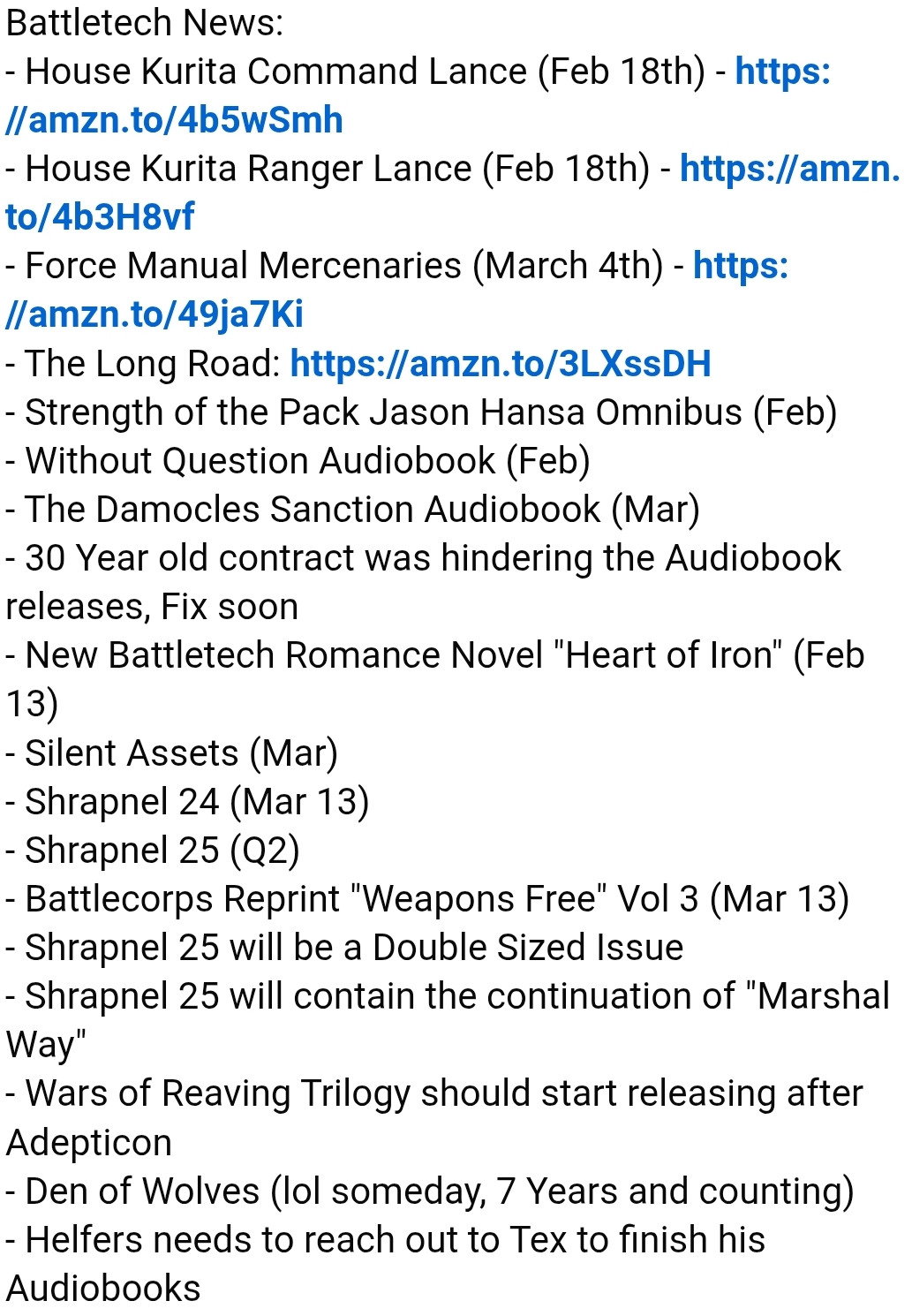 The /btg/ is dead! Long live the /btg/!Smoke Jaguar editionPrevious Thread: >>97394316================================>BattleTech Introductory Guide & PDFshttps://bg.battletech.com/?page_id=400>Overview of the Major Factionshttps://bg.battletech.com/universe/great-houseshttps://bg.battletech.com/universe/the-clanshttps://bg.battletech.com/universe/other-powers>Rookie Guideshttps://tinyurl com/ydtr589ehttps://pastebin.com/HZvGKuGxhttps://files.catbox.moe/l1gjfi.jpg>Sarna.net – BattleTech Wikihttps://www.sarna.net/wiki/Main_Page>Force Building & Unit Faction GuidesMULhttp://masterunitlist.infoXotl's Random Assignment Tableshttps://tinyurl com/fejwk5f2>Unit Design SoftwareSolaris Skunkwerkshttps://www.solarisskunkwerks.comMegaMek Labhttps://megamek.org>MegaMek – PC version of BT with bots & multiplayer!https://megamek.org>How to Play Against the Bot?https://www.mediafire.com/file/l5mqjydrgndnndu/Against_the_Bot_v4.pdf(Included in latest MekHQ docs)https://bg.battletech.com/forums/index.php?topic=56065.0https://pastebin.com/pE2f7TR5https://www.mediafire.com/folder/rkg2sl5ybr24k/Battletech_Portrait_Packhttps://www.mediafire.com/file/a3x576yflof0ca1/MekHQ_Fluff_art.rar>Flechs Software – Digital record sheets & more!https://flechs.net>Instant Action – Play custom scenarios for tabletop!https://victorypointproductions.neocities.org/instantaction>PDF Troverebrand ly/CranstonSnordrebrand ly/SnordsStoryTimerebrand ly/CranstonLogFilesrebrand ly/CranstonSnordDropBox>Older Troves (2013-2020)https://www.mediafire.com/folder/cj0tjpn9b3n1i/Battletechhttps://tinyurl com/2p8p7cewrebrand ly/BTmags>/btg/’s own image board!https://bgb.booru.org/index.php>More /btg/ tidbits! (2020-05-17)https://pastebin.com/uFwvhVhE