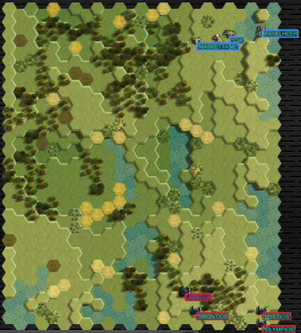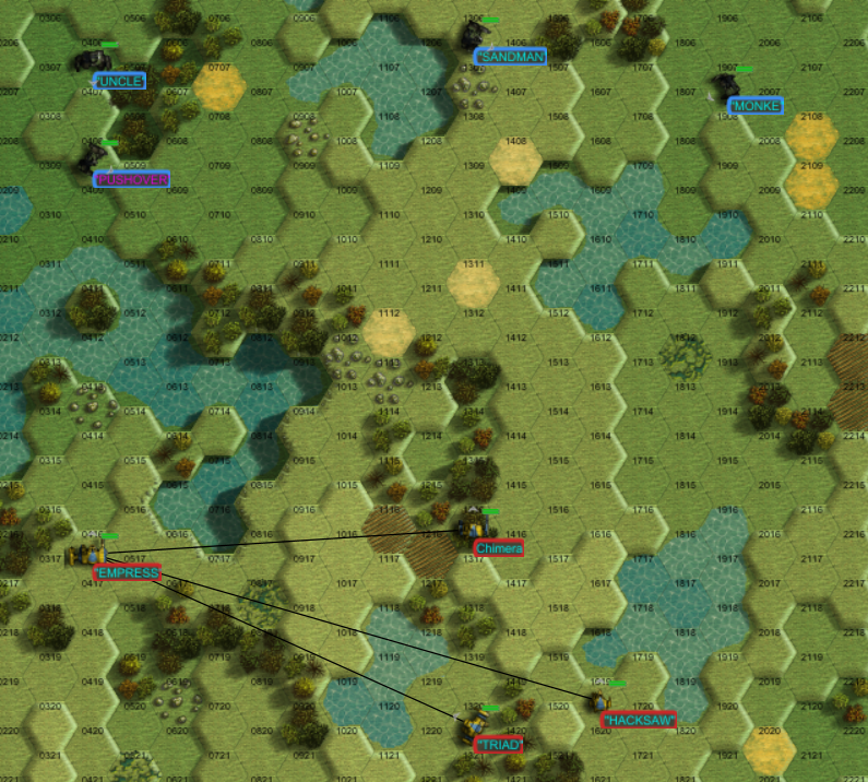 >>97412265Here's the combat area, with both forces deploying to the right side of the map we'll see how that works for the lighter lance as the Zeus troop try to chip away at their advance.