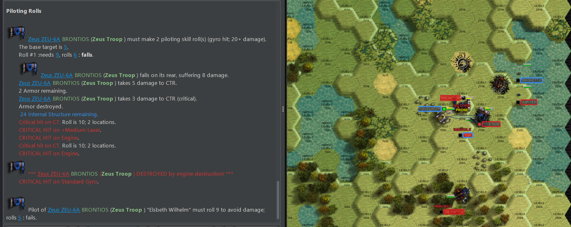 >>97412409As the teams close in the violence escalates, Masketta goes down to another ammo explosion as Olympios takes a bad hit to the hip actuators on both legs.Deciding ejecting while prone in the woods is a good idea, he turns himself into a living pancake. On the other side, brontios punches the ammo bins of the rakshasa, finishing off the madcat wannabe.As the 2v2 continues the albatross piloted by bane takes a hit to their ammo as well ending their run thanks to the destruction of their engine leaving pavelheer alone to fend for himself. but after a daring charge in between both of the remaining zeus troop members, he manages to make a critical dodge in melee to lead to a 1v1 scenario after another volley of fire.This is by far our closest match yet!