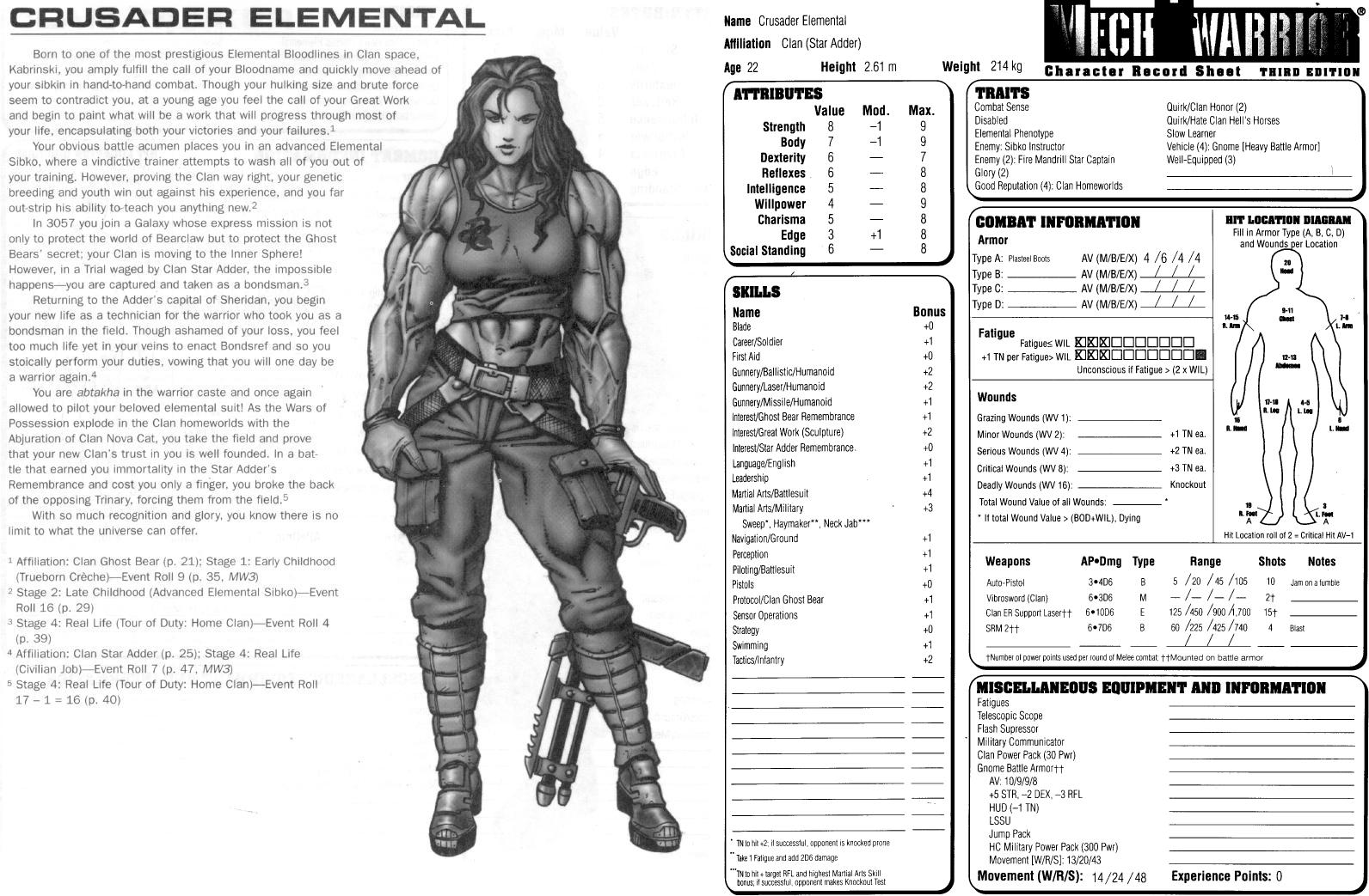 >>97411791I've got a Seeker Mixed Binary I use and write about, even got some art of the Star Captain in an Annihilator. Other mechs are a Shadow Hawk IIC, Hunchback IIC bondsman, Howler, Horned Owl for one star, and the other being a Phoenix Hawk C with the remaining points being a mix of Elementals, Undines, Sylphs, Salamanders and infantry. In fiction, they end up doing a lot of exploring, so everyone but the Seeker needs mechs with hands or mobility or environment options. The plain infantry end up mostly using their field shovels, and are of the opinion that this is a punishment posting as they tend to die ignoble deaths frequently. They make a very objective-focused OPFOR, and let me chew the scenery a bit. Helps that I play them as slightly unhinged SLDF fanboys.
