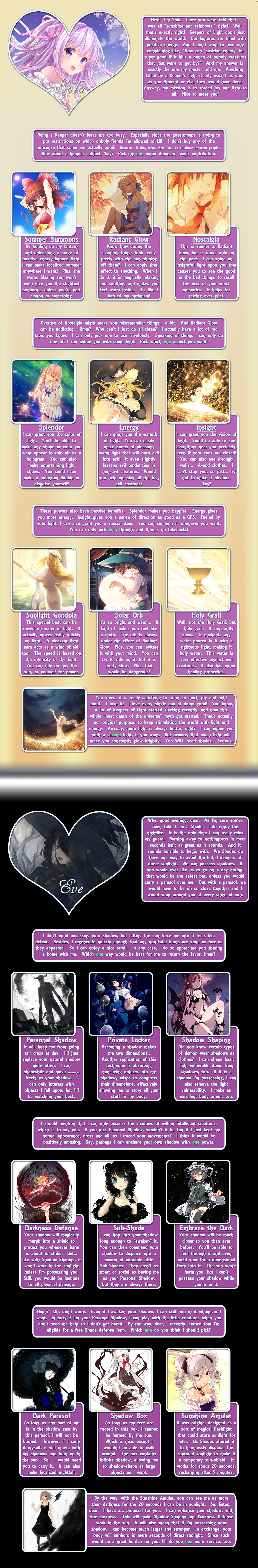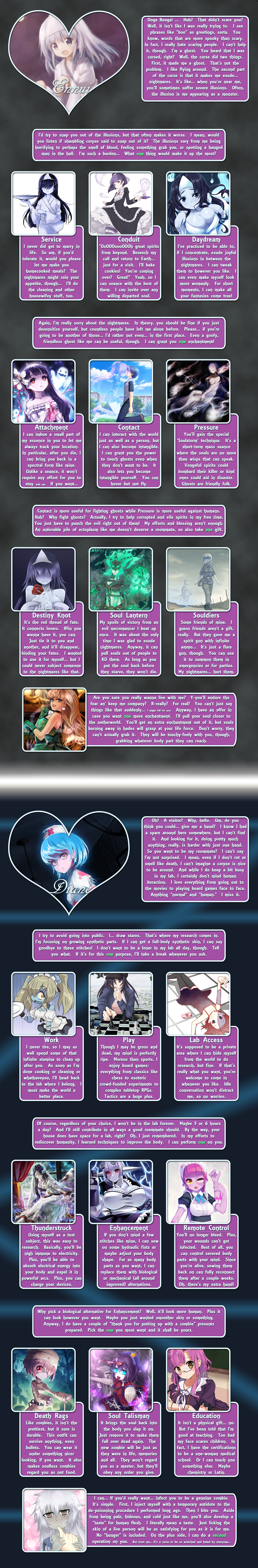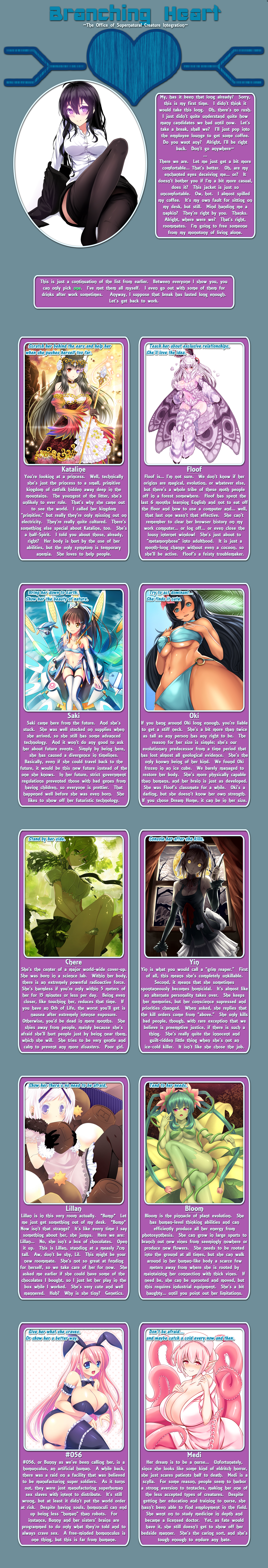 >>97414276Library, page 2.Requires a perk from page 1 to access.Just like in Planeswalker Rising. It's bad design and shouldn't be copied imo, there's no indication how you're supposed to handle it on replays when you already know the info.And that's all of Branching Heart, by Beri. The end.