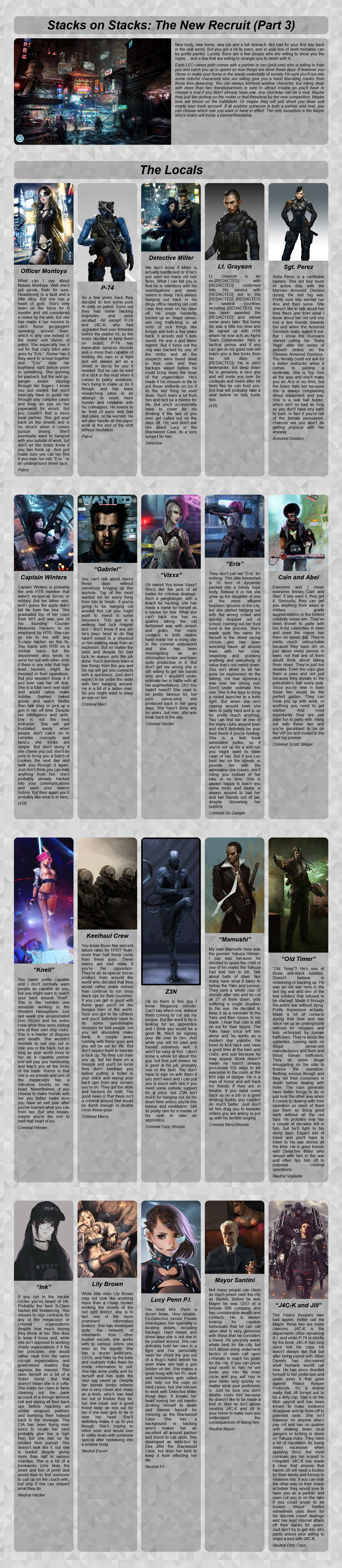 >>97414892I would argue that being generic rebellious "punk" criminal in a cyberpunk setting is a much bigger trope than being a lawman. Both still lose to the chad corpo path tho.