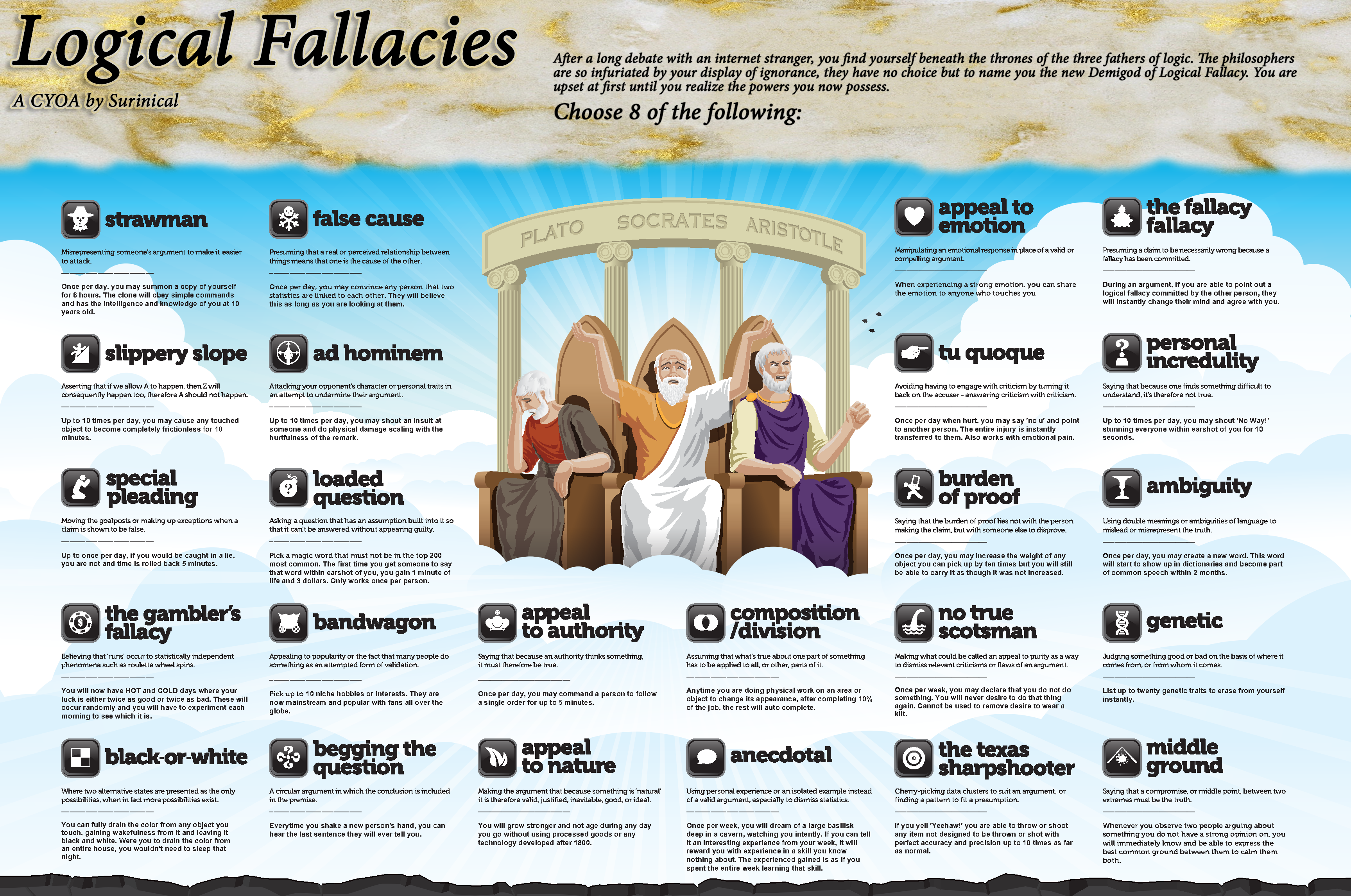 >>97414198Posting a single 10-page cyoa is spamming. If you don't agree then I'll post the entirety of Fate Another Pretender and see how you like it.