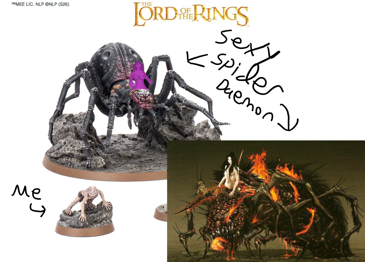 I'm building by first army (Emperor's Children) though have some experience with building and painting models already. So I wanted to do something unique for my armies daemon princes and was looking through GW's site. I saw that the LOTR section has a Shelob model coming and it gave me an idea to make something that looks like Quelaag from Dark Souls. So I'm mostly curious on how good the actual model quality of the Lord of the Ring stuff from GW is and also how they compare in actual size to 40k models. Since I want to be able to use it as a daemon prince proxy I'm worried if it will be to big or small compared to one.