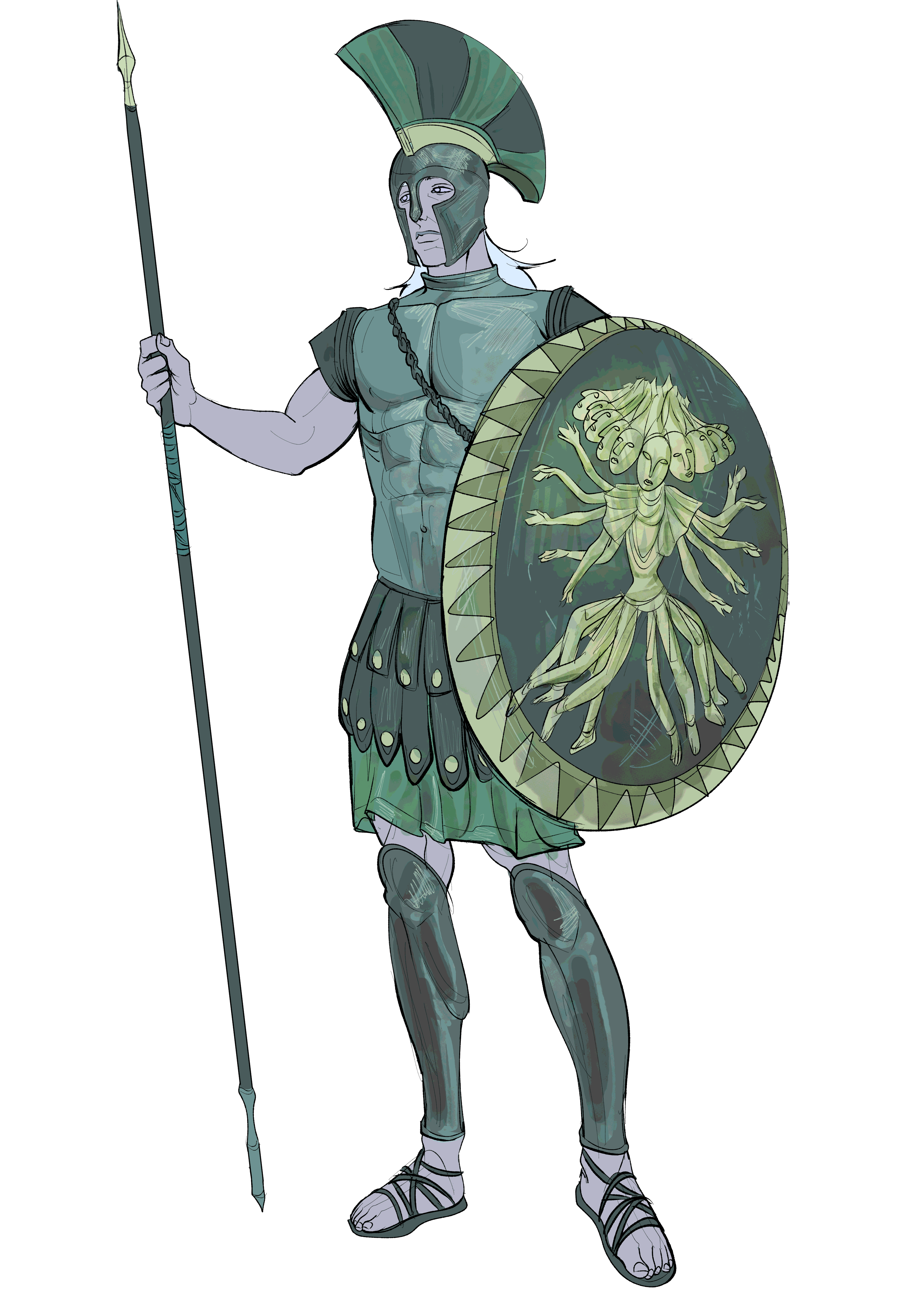 Working on a fairly simple, straightforward jungle setting supplement thing, preferably for use with B/X D&D but the monsters and whatnot in it will be compatible with pretty much any old-school D&D edition and their various clones.the humans of the big jungle are in a sort of bronze age, and the dark elves that live on the coast are more late iron age / early antiquity, and aesthetically heavily inspired by the greeks, though the goddess they worship is inspired by the hindu deity mahakali. im kinda just mashing together stuff i think is cool for fun, i don't care too much about making it super realistic.here's some art i commissioned from a friend of a dark elf soldier