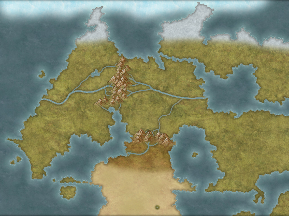 >>97423582Trying my hand at making a fantasy land (think the size of Europe) for fun for the first time and I think I could use some advice on really where to get started.Using Inkarnate I have made a basic landmass, mountains (might add at least one more chain of them) and a started a few clear biomes, e.g the desert, tundra/ice fields, and so on.I don't really know much about doing maps other than deserts being made due to no or little rain from mountains stopping the flow and that rivers start small and converge together.I also plan on having this map be a very "zoomed out" overview, so not every geographical feature will be present, but key ones like grand/major rivers, large mountains, and later on great forests, jungles, marshlands, etc will be present.