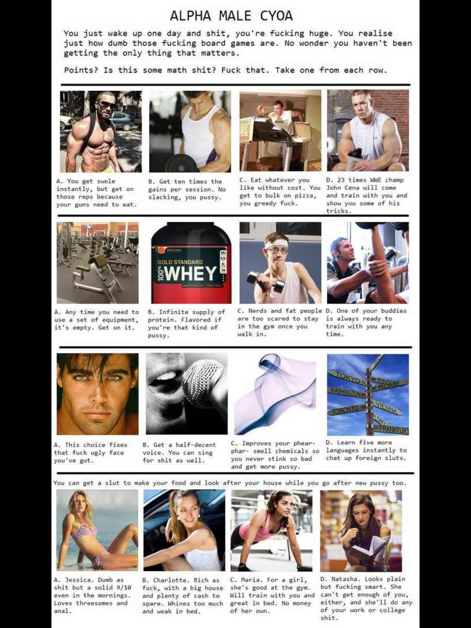 Sometimes I go through the archive and am astonished by how prolific an author was, unbeknownst to me. BTGAnon has made a bunch of classics that I never associated with him, including pic related - one of the all time /cyoag/ greats