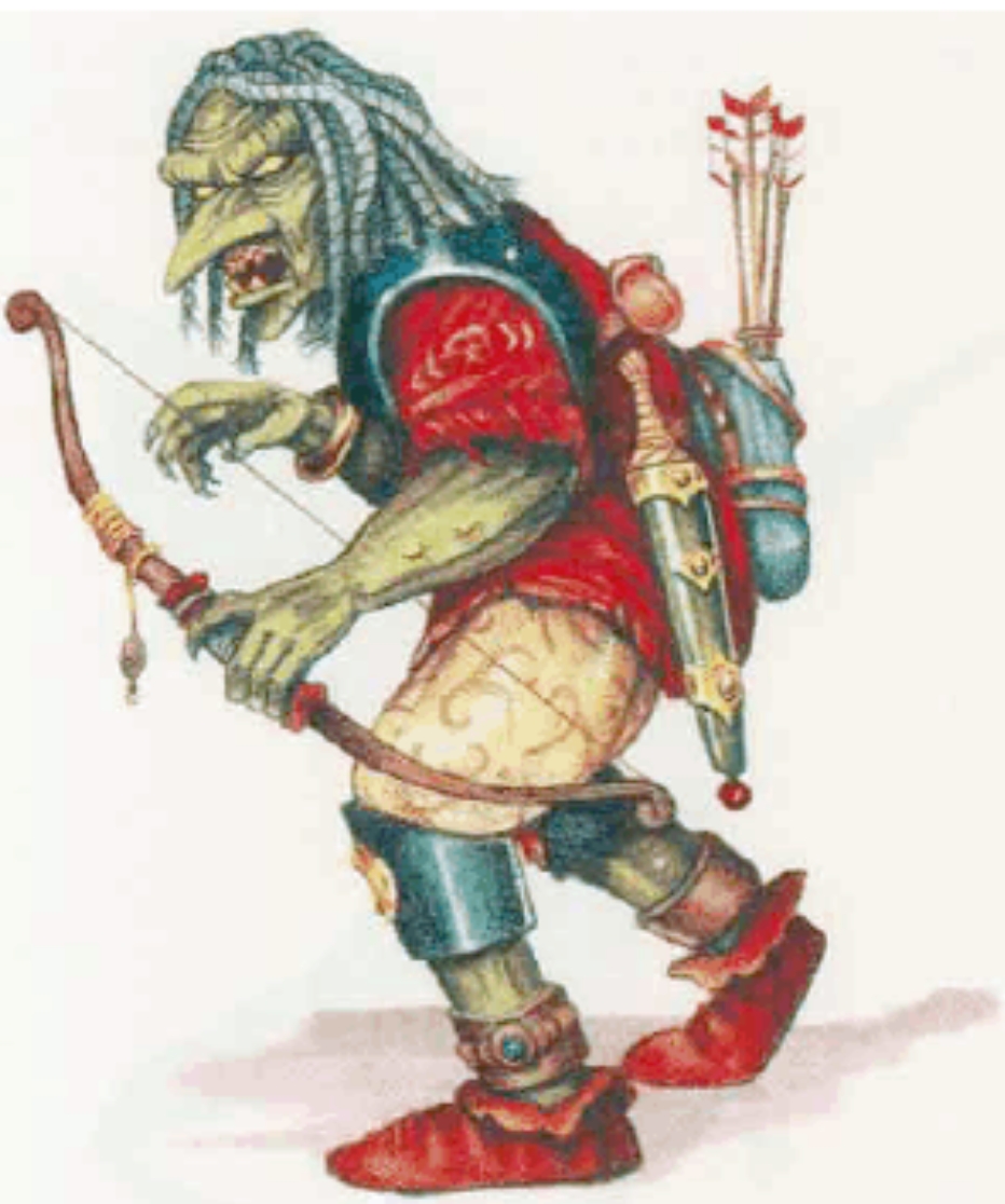 >>97445348>the only one missing is a 3 HD oneDo you really need that many different humanoids? I think the ones from the MM are enough for a lifetime of adventuring, and most of those from the FF are either poorly designed or not different enough from the MM ones to warrant including them.When I want to spice humanoids up, the ACKS II variants are great for the job. That, and giving them different pets or allies, as well as shamans and witch doctors.This having been said, strictly in the goblin/orc "design space" you're missing Xvarts, Ogrillons, and arguably Jermlaines, Mites, and Snyads.Also Gillespie's Black Orcs have 3+3 HD and they're meant to be Uruk-Hai.