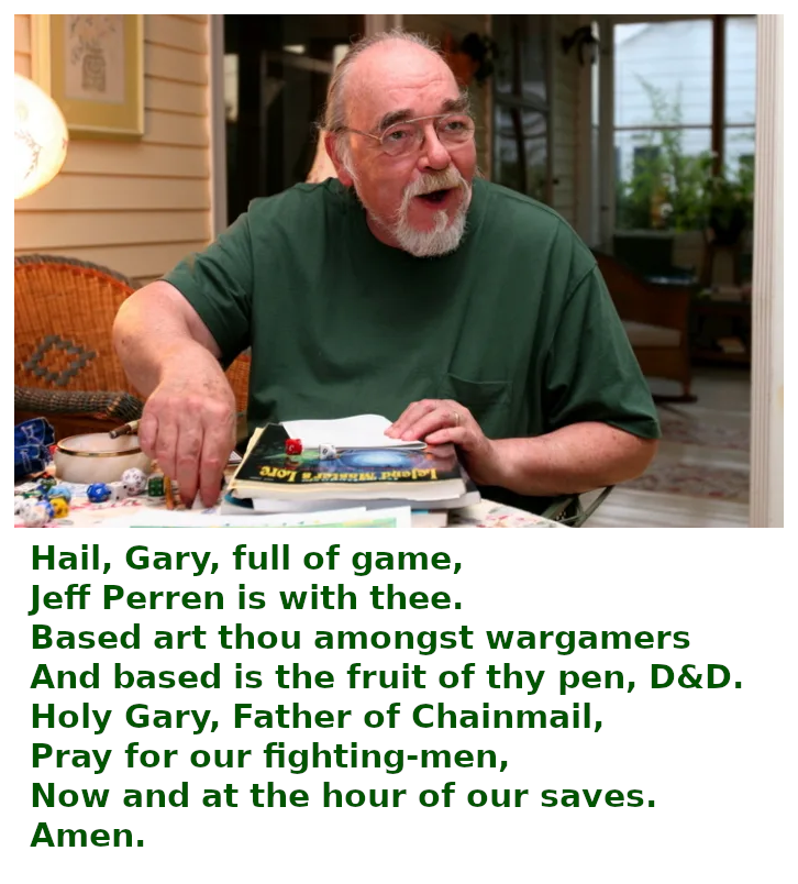 >>97432935True. He's more on the line of "Slavery is fine, actually, and a pure expression of the free market" kind of character. The retvrn to monke aspect is just for Druidic flavor.>>97431581Sounds like a good session! Curious to know:The spear trap. Did you telegraph it at all? Did your players not specify that they were checking the floor as they moved, or did you just spring it on them? Did you roll the 2 in 6 chance for it to trigger? Hallway traps are something I struggle with ruling and the party is very careful about how they move to the point that any of the more common traps found in a hallway would only really be triggered if the party were running or what have you.Critical hits. How are you ruling those? Double damage? Max damage? Gary (pbuh) warns against them in the DMG combat section as they must cut both ways to be fair but that they also drastically cut down on PC life expectancy.In any case, it sounds like you had a blast. I somewhat regret making Stonehell the centerpiece of this current campaign as the party is likely to spend a lot of time there, which limits my ability to use other, smaller modules.