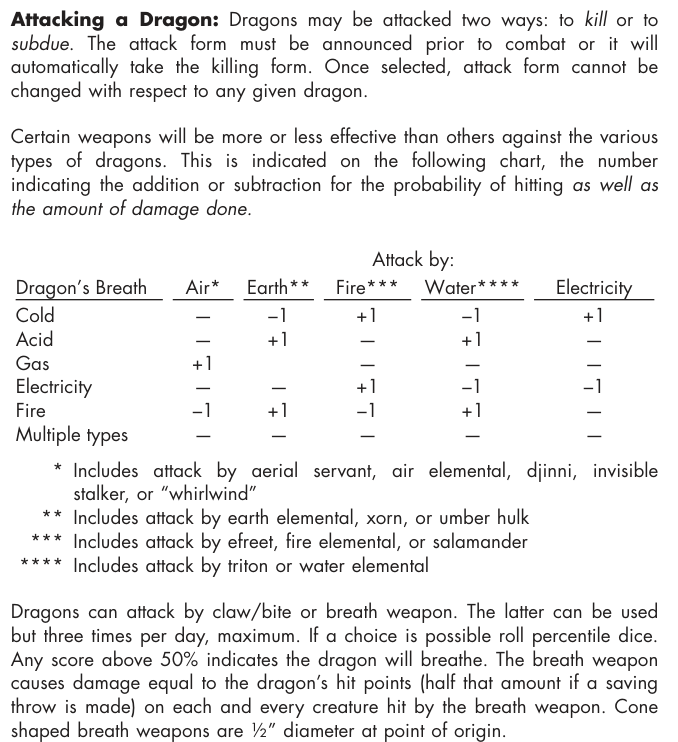 >>97436055Maybe I can also incorporate the B/X immunity and copple that with the age. I kinda want the Ancient Red Dragon to be able to leave his hoard through a lavafall.