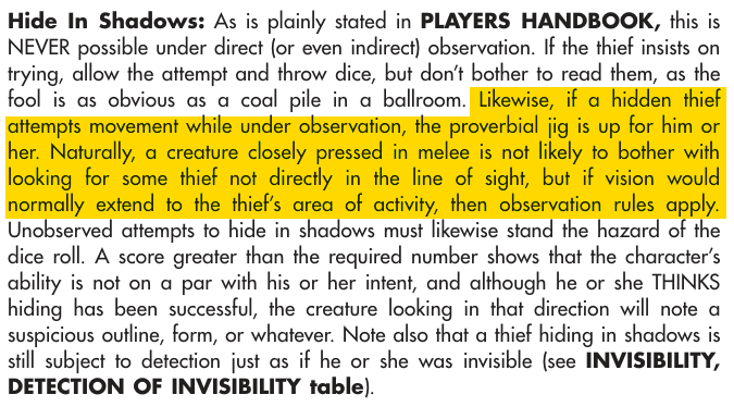 >>97451388Thanks for the detailed answer, Anon. I am reluctant to have some of those activities be by spell only when a 1-in-6 chance might do. What a spell should do is grant a 100% chance of success in extremely difficult cases (when even the 1-in-6 might be negated, such as Wizard Lock) or under time pressure (pursuit).For climbing rough and dry surfaces, I just allow non-thieves to use the thief probabilities for "sheer surfaces", thieves succeed automatically when in play.