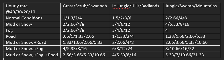 >>97449530NTA, but do you not see the problem with hexes that vary in physical size depending on the difficulty of the terrain they contain? It's a pants-on-head retarded idea that I'm sure anon has never actually used because he would have encountered problems with it right away.