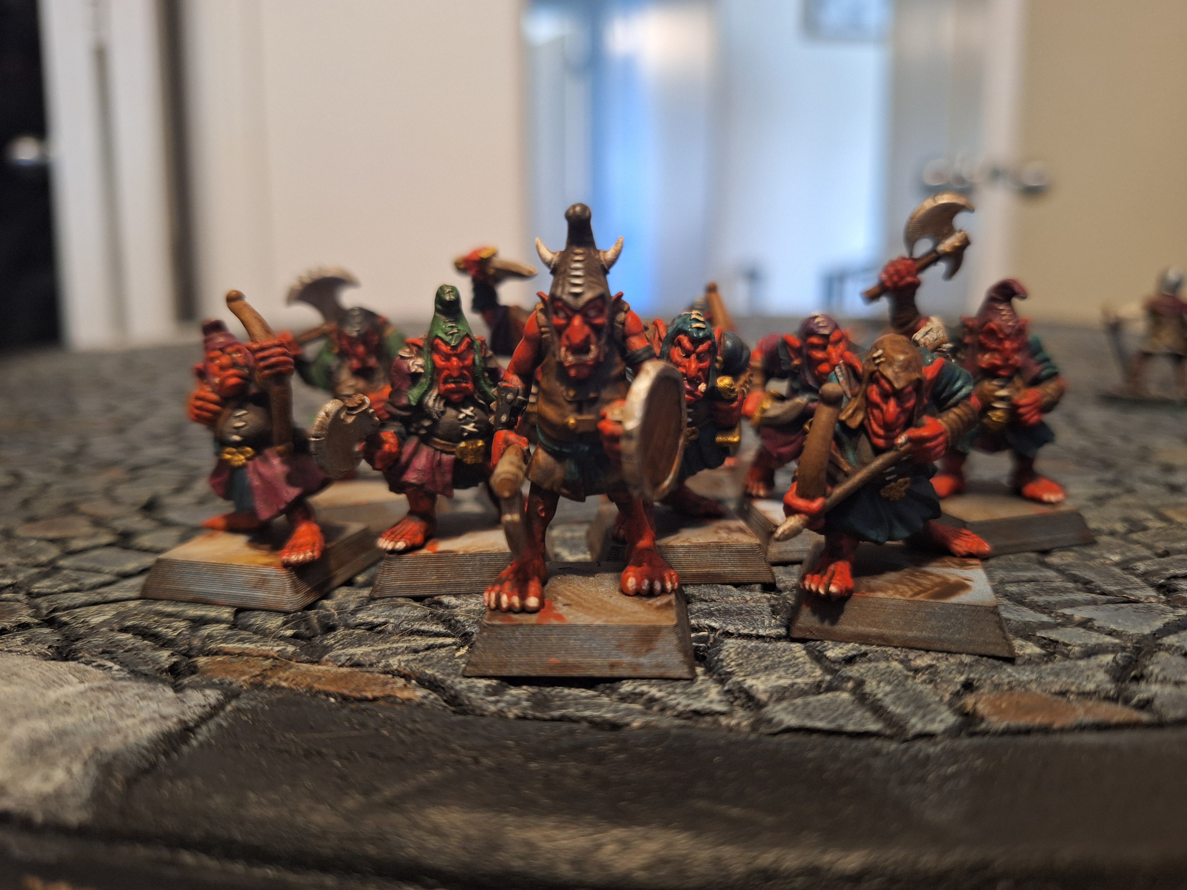 >>97447507I've also been painting terrain and miniatures, but I don't tend to post about them too often in this thread. Currently working on Lizardmen. Here are some Hobgoblins.