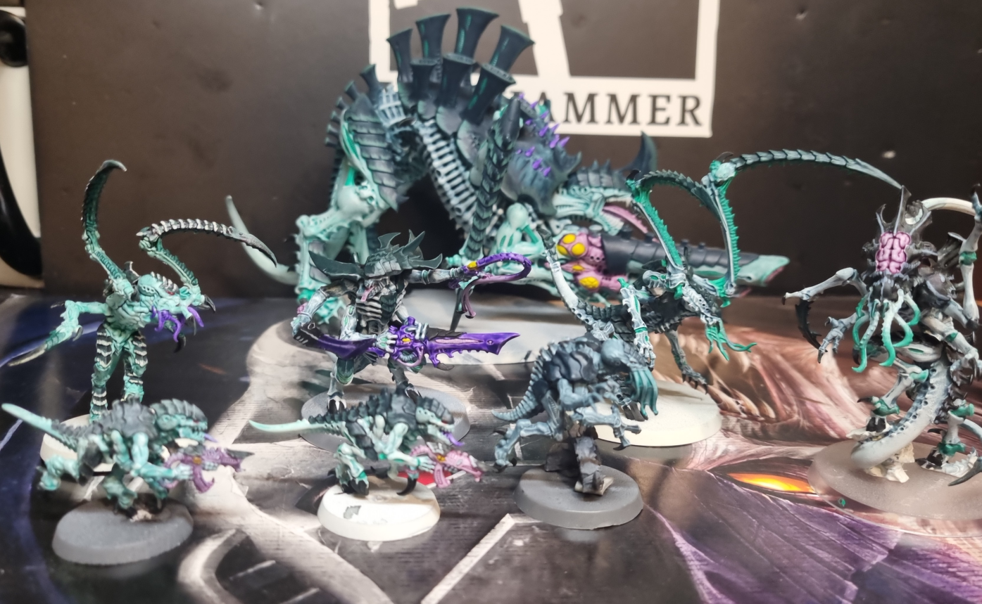 >>97431040Now that I look at them again I guess they didn't turn out that bad, but I definitely need to go back to the first ones and fix them up.Wanted to paint something like tiamet and followed a guide but ended up with green tiamet, I wanted more like the blueish tiamet from the leviathan box. Started with aethermatic blue for the skin but it looks more like green so I then tried nighthaunt gloom. After not liking the chitin from the gant and leaper I settled for lupercal green and sons of horus but it also needs changing.The lictor and tyrannofex were the latest models I painted for the army and I kinda like them but I still think the scheme needs refining.