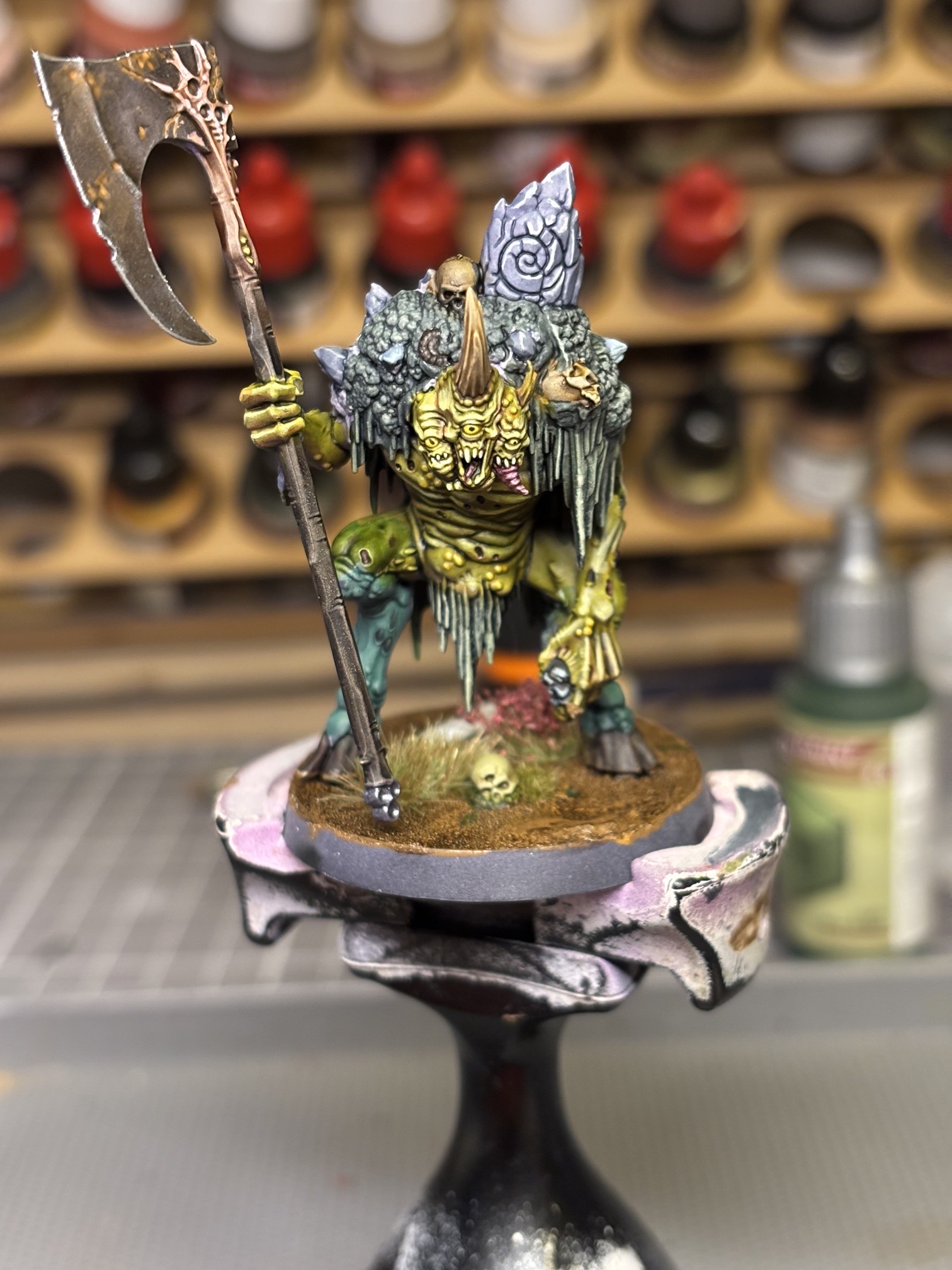 Finished this guy yesterday. The base, oddly enough, looks less busy in person but im still getting the hang of doing my own. Had to paint it and build it before using it so a bit of a rush job in alot of spots.