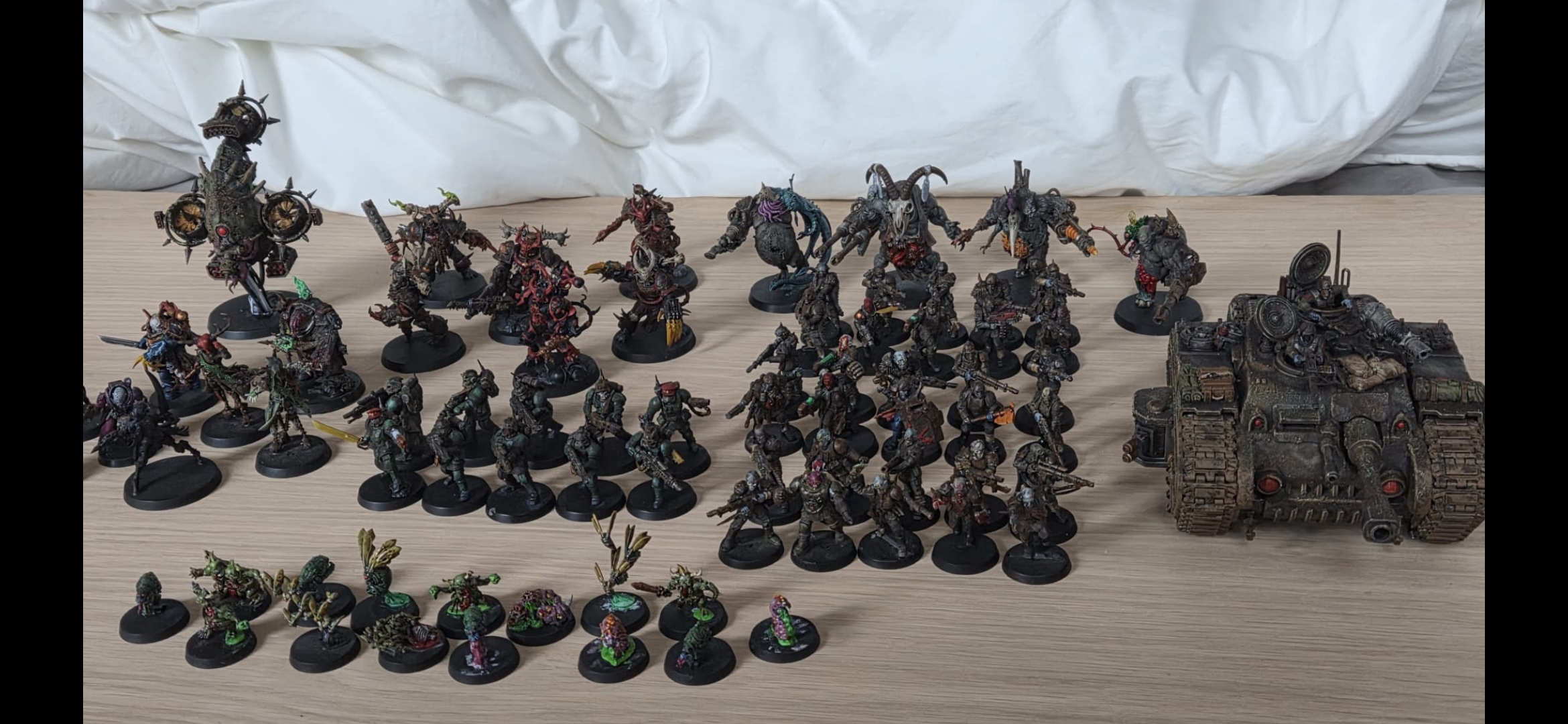 >>97430826There's a couple of big bugs in there so it's only around 80 models. I'll try airbrushing a coat of white or black over everything and see where to go from there, I hadn't thought about that thanks anon.I'm not really happy with the color scheme, I tried following a tutorial but didn't like how it turned out. I wanted to play with painted minis and didn't want to feel like I wasted my money on all those paints so I powered through all that I had.