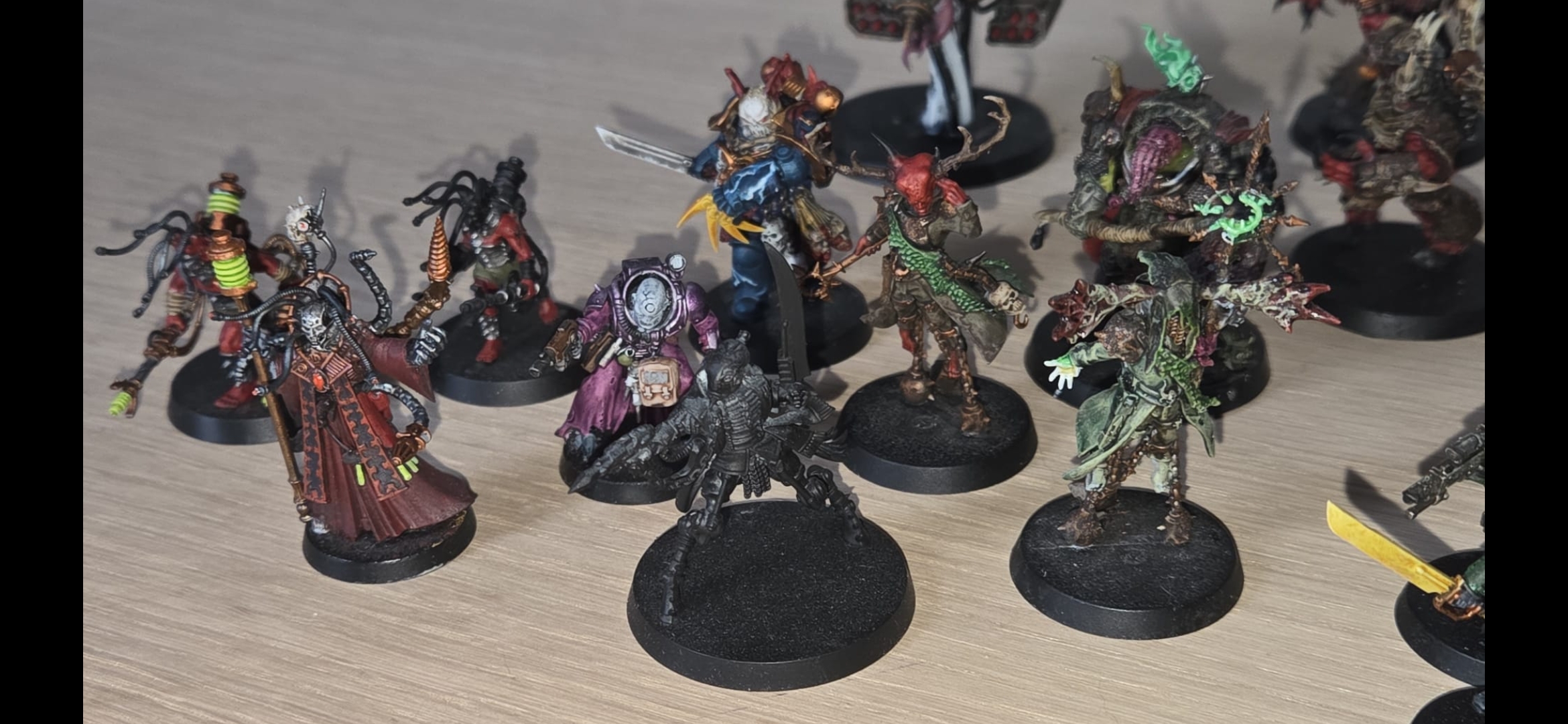>>97431457>refininganon you don't even have the same colors on all of those minis, the shades are all over the scale, a number of them don't have the purple and a number of them don't have the pink, one doesn't have either, one has blue face tentacles, aother has purple face tentacles, another has teal/grey face tentacles.they're all in a similar color palette, but they aren't unified like they should be.that being said only two of them appear to be below the others in painting quality, but it does look like they're randomly assembled in this shot from 3 or 4 different armies.