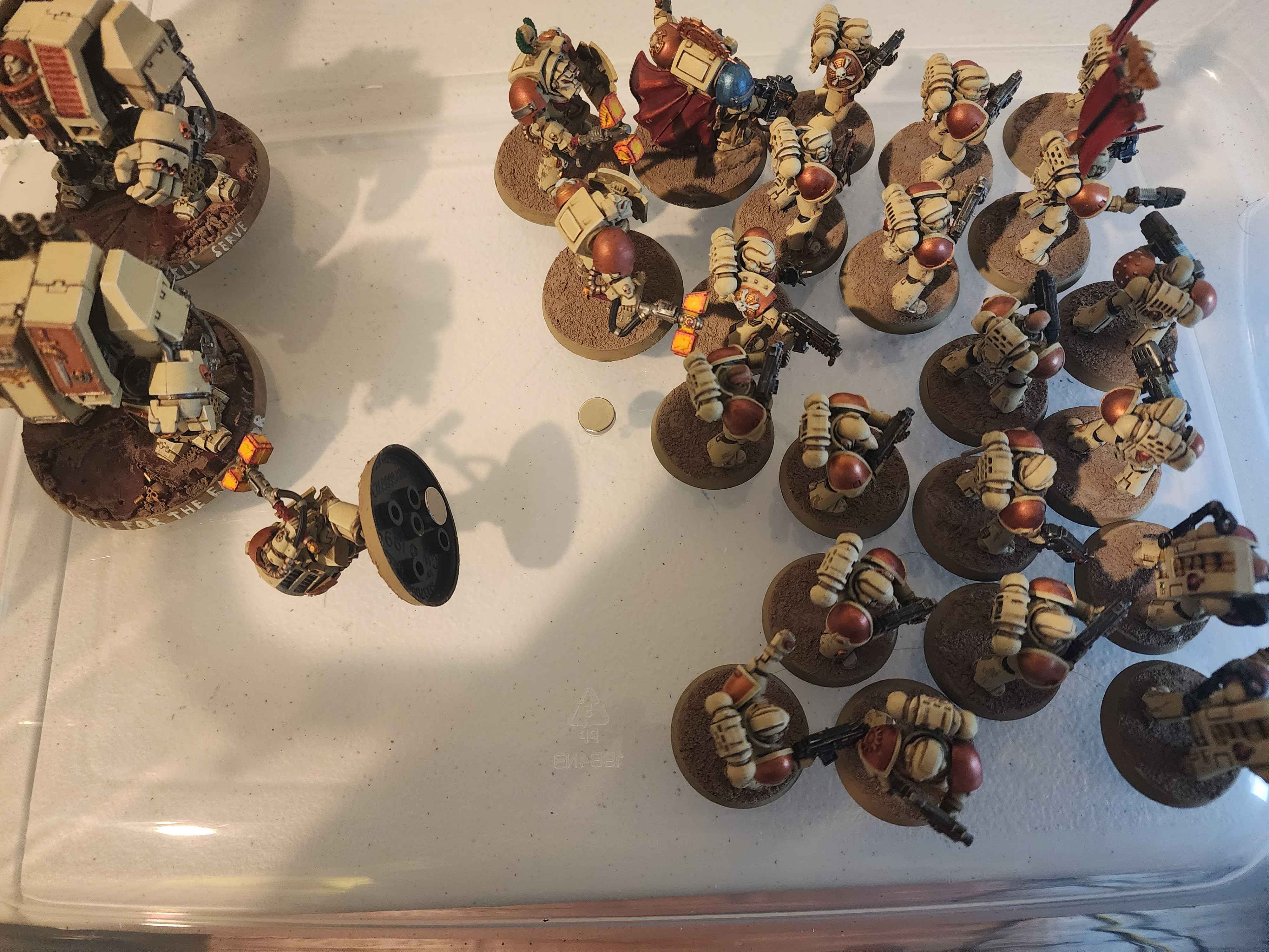 >>97440371let me give you a protip. instead of directly gluing a magnet to the base, get a small piece of stainless steel roughly the size of the magnet you are planning to use and glue that to the base instead, leaving the magnet lose. Not only will it prevent from the models sticking together, the steel will hold onto the plastic better than a magnet will.