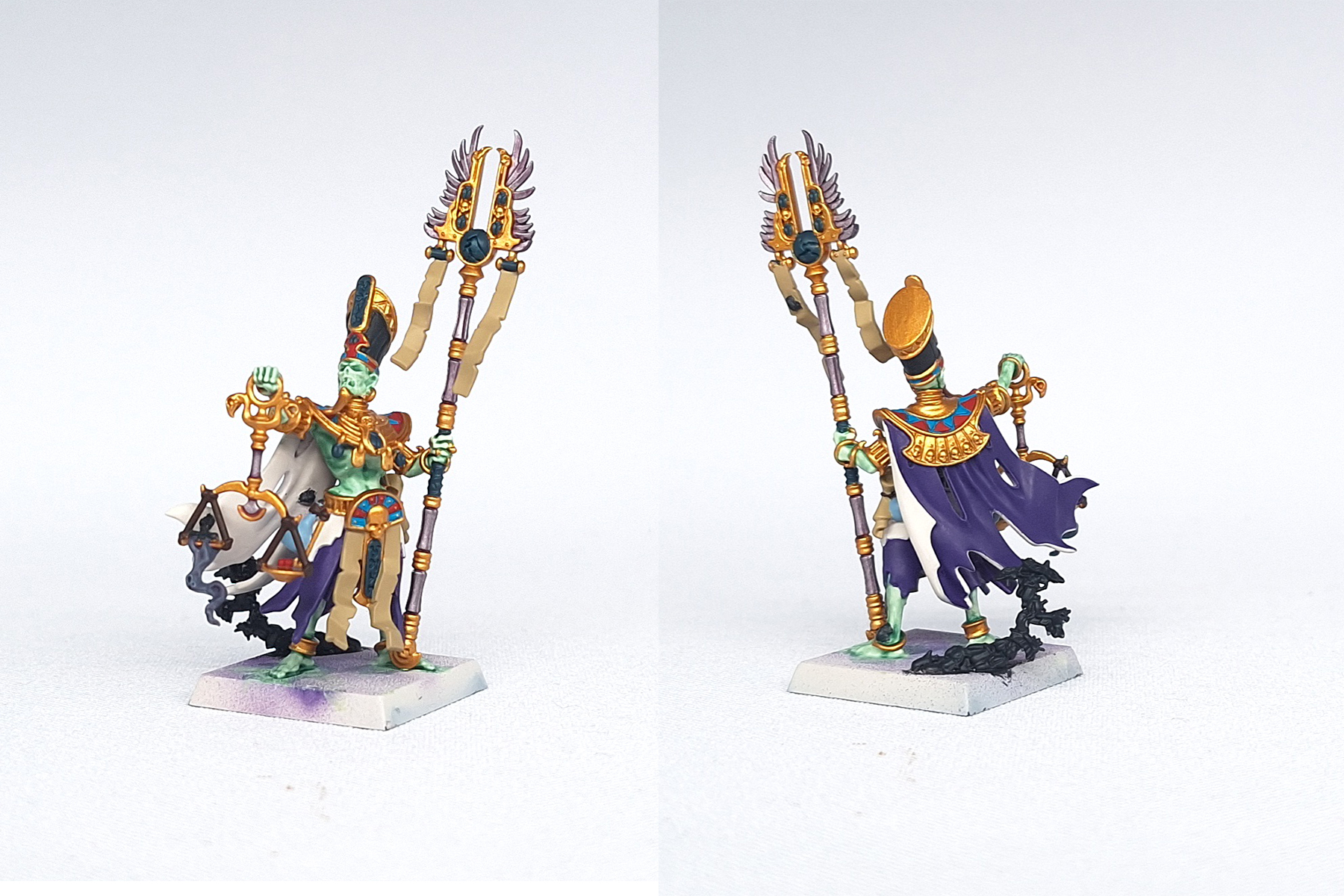 Been working on the new liche priest a bit. Do you guys think this skin color works here? It's going to be highlighted to a greenish white but I can't shake the feeling I should've went with a turquoise hue for the shadows.