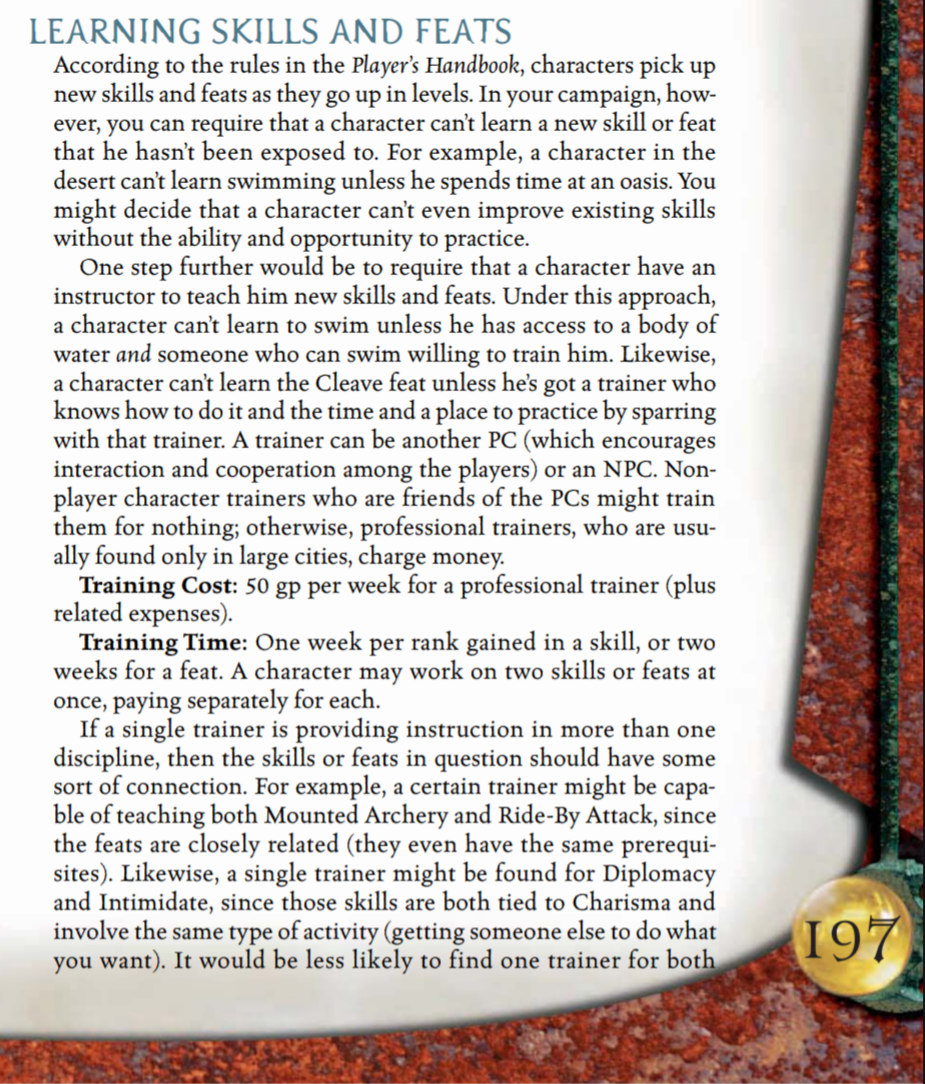 >>97527321>Why does it take 8 to 10 weeks for a Rogue to get up to speed when it takes 2 weeks for a Cleric, and with Clerics having an obvious hierarchy of power, they get to have the easiest time finding a trainer?Supposedly because it extends the timeskip giving more downtime to classes with less skills point, specifically casters, so they can craft magic items and consumables for the rest of the party. That doesn't negate the fact it's very poorly designed, i agree with you, that's why i try to mitigate it with other stuff (like obligations to patrons and shit), it's better than nothing because the bar is in the fucking ground in this regard rulewhise.