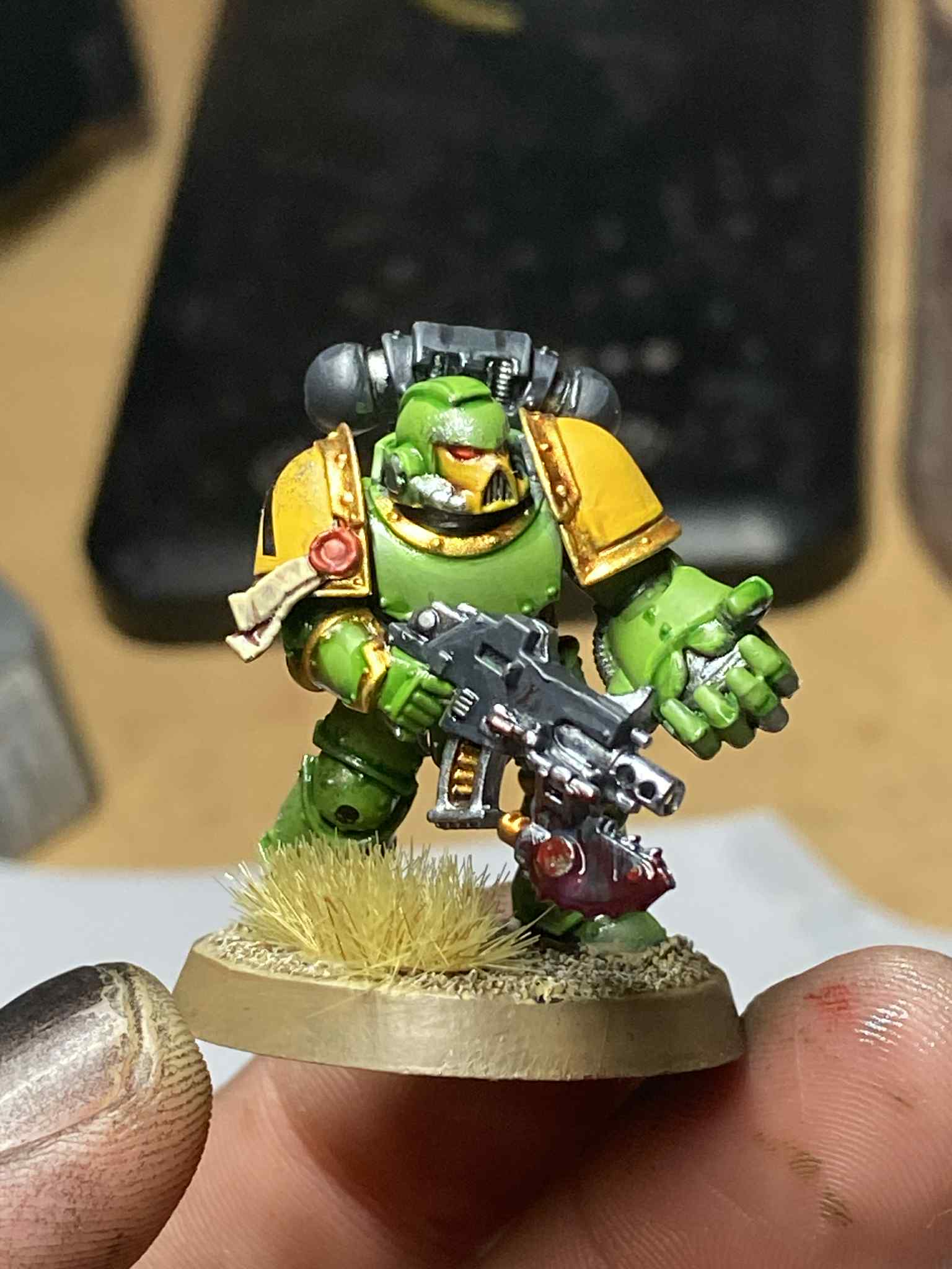 >>97445262Stripping some old crimson fists and making a 500pt 7th edition mantis warrior armyDid this tester model last night which has given me the urge to get the fists strippedWon’t win any awards but it’s a decent tabletop standard and it’ll look cool when the rest are done