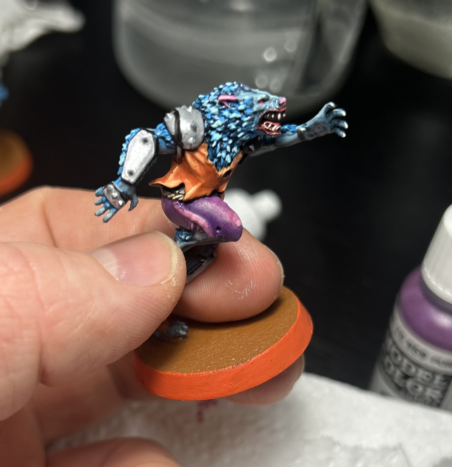 >>97452433>>97447453I'm gonna do black pads with violet contours I've decided. Bright spot on one of them is reserved for player number. I don't know how to make the metal ones on werewolves more interesting. What do you mean by paint the metal? It's purely Vallejo Aluminium.