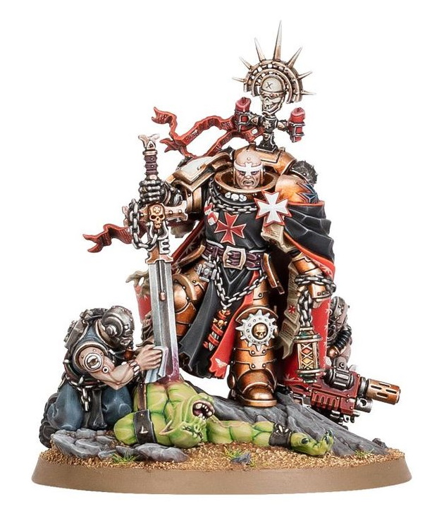 Anyone that has any ideas of a model that is resting on a sword / weapon ( preferably with both arms). Want to kitbash a champion for my night lords warband